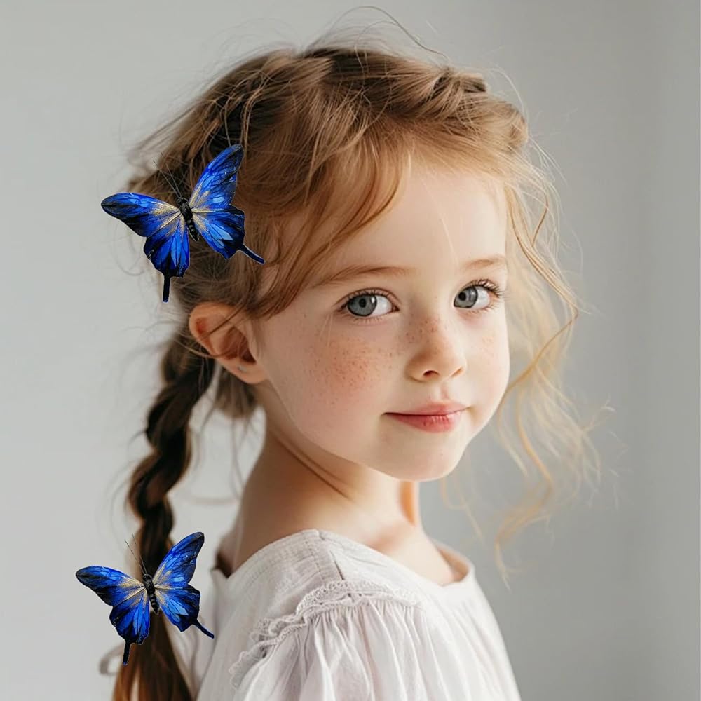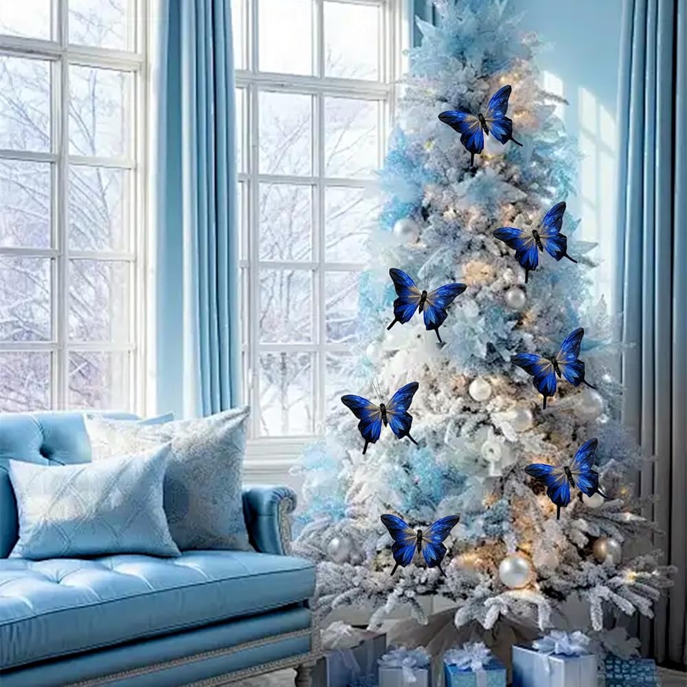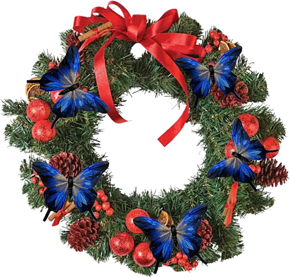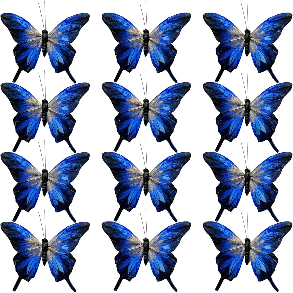 12pcs Royal Blue Butterfly Decoration Christmas Tree Ornaments 5-Inch Gold Glitter Feather Butterfly Clip for Flower Bouquets Decor Garland Wreath Crafts Birthday Party Gifts