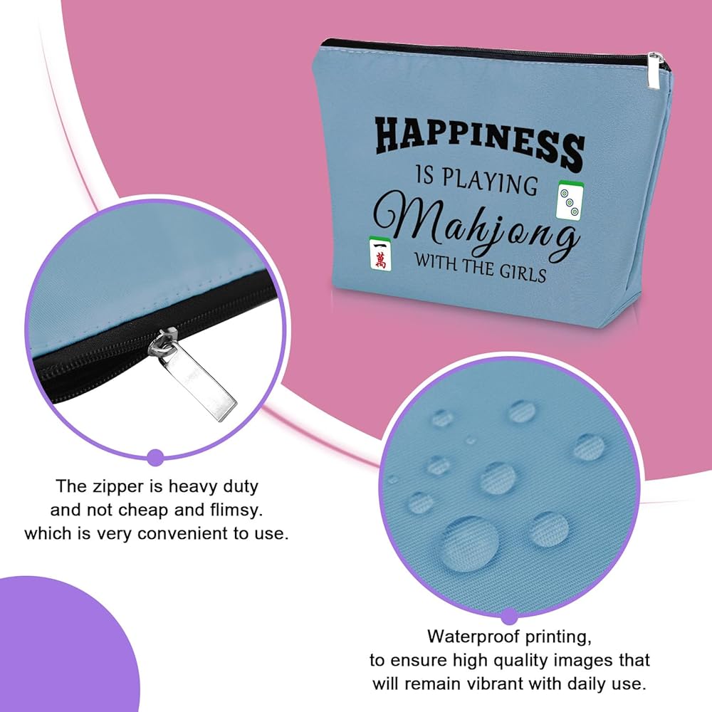 Mahjong Gifts for Women Funny:This purple makeup bag is sure to impress you. Mahjong is a recreational game, when you want to play this game with others, luck will come to you. Makes a great gift for mahjong lovers or anyone who loves collecting luck tiles.