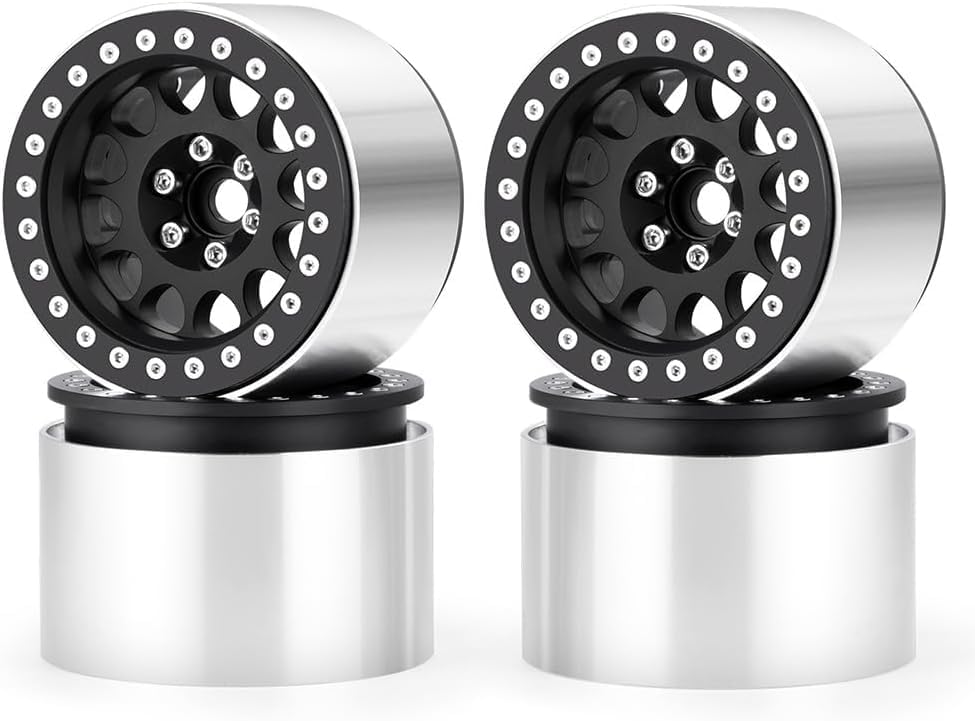 MORLORDY 4Pcs 2.2" RC Wheels 45mm Beadlock Wheels Rims for Axial Wraith RR10 SCX10 Capra 90046 90048 D90 CC01 TRX4 TRX6 Redcat Gen8 1/10 RC Crawlers(Black)