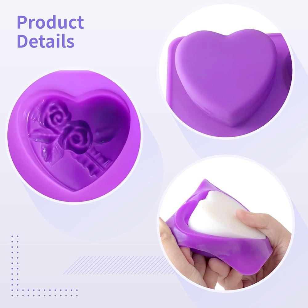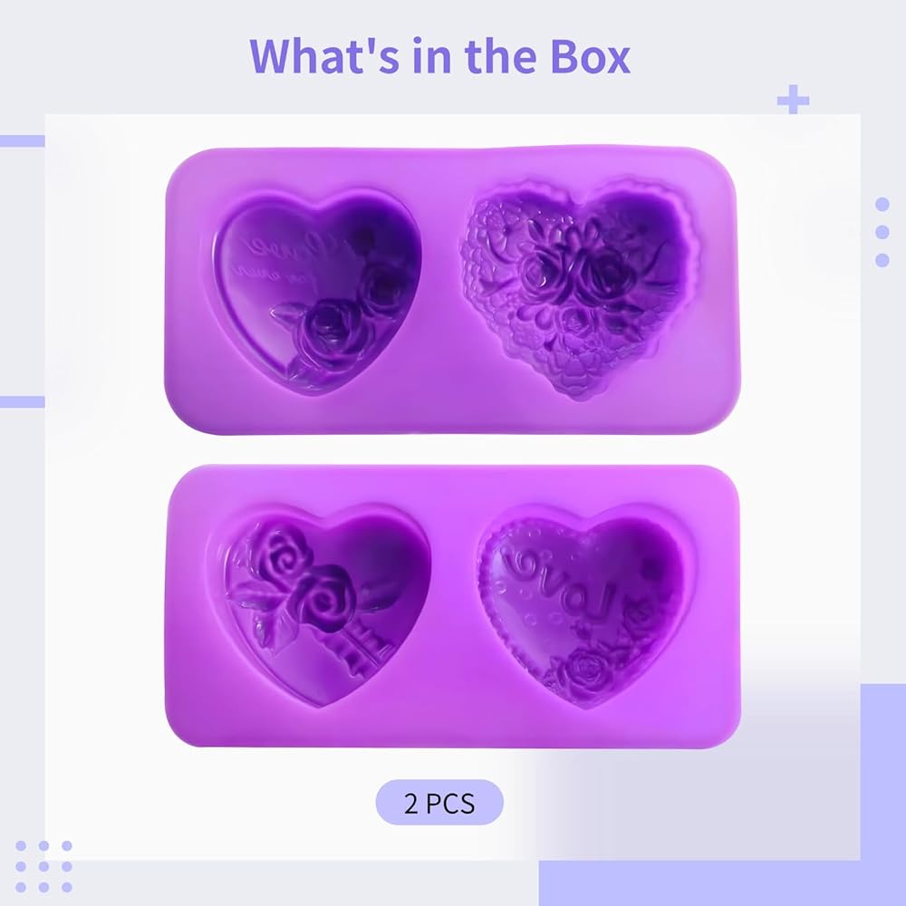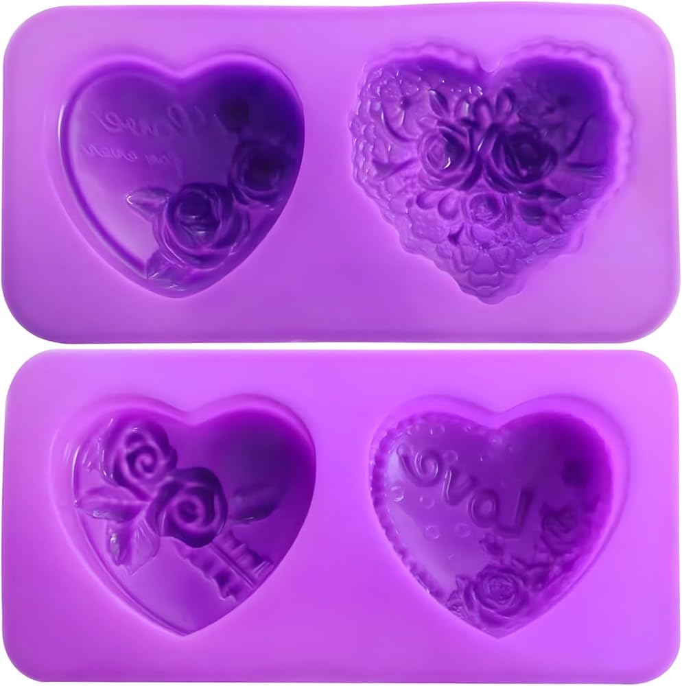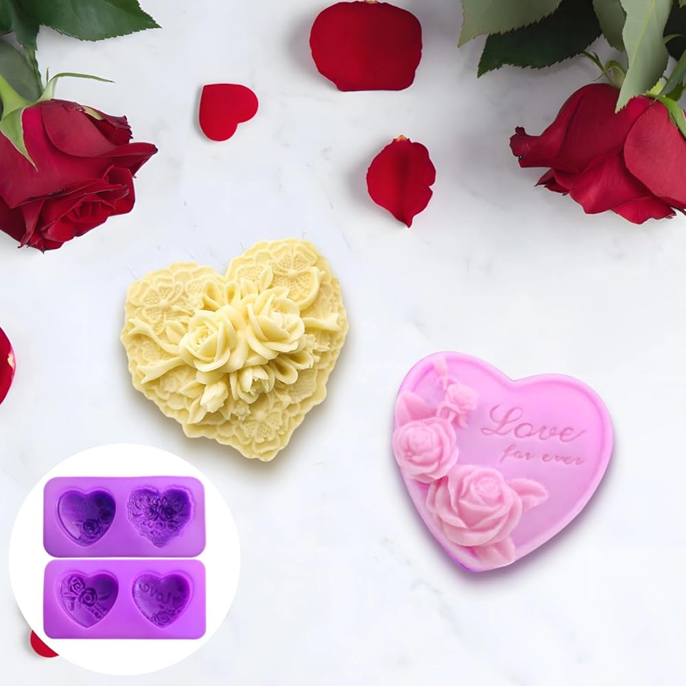 Heart Shaped Soap Molds with Rose Design, 2 Pack Silicone Molds for Soap Making, Love Pattern Handmade Soap Molds, Valentine's Day DIY Craft Supplies, Bath Bomb Making Kit