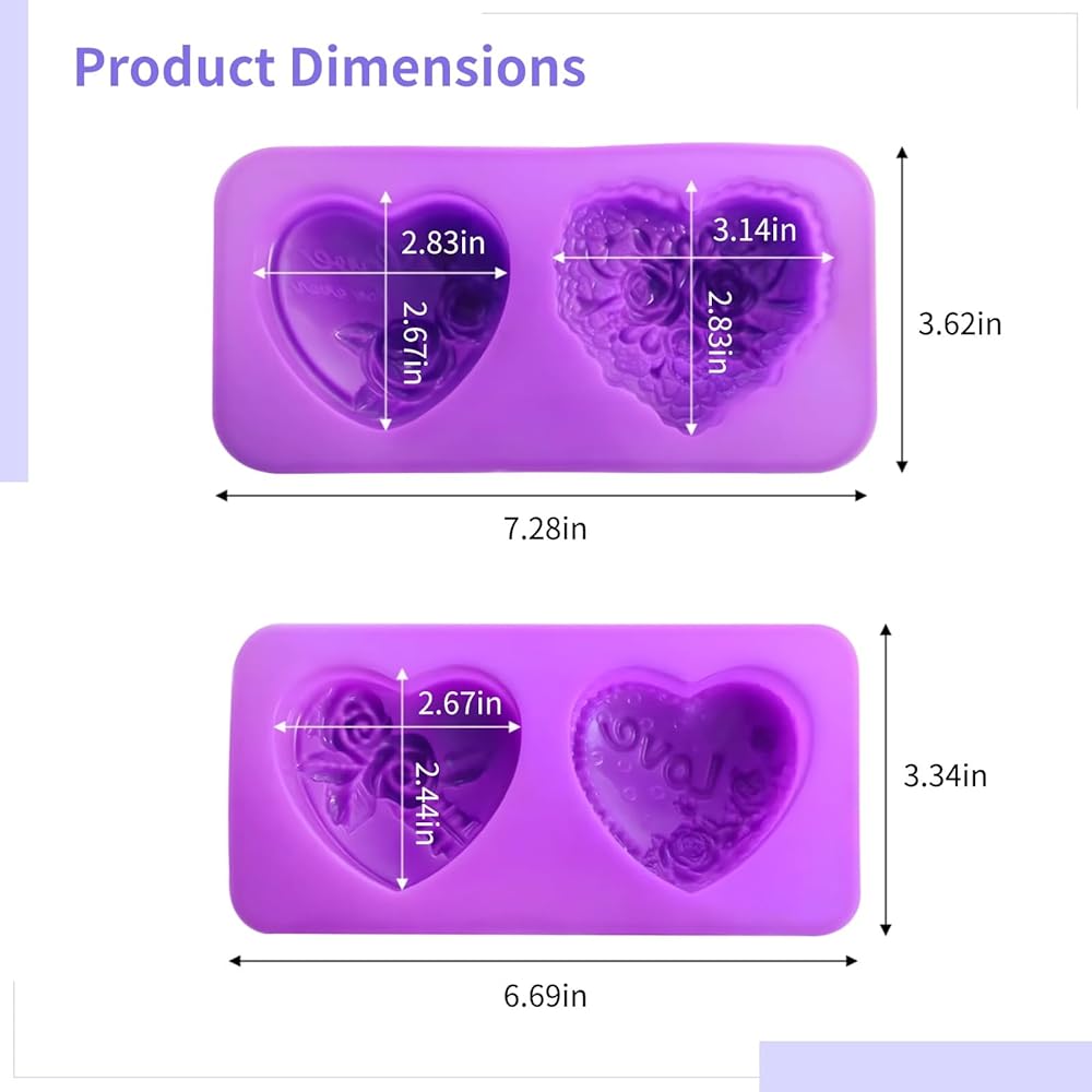 Perfect Size and Capacity: Each heart measures 3 x 3 inches with ideal depth for standard soap bars; two molds per package doubles production efficiency; compact size for convenient storage; creates perfectly portioned bath products