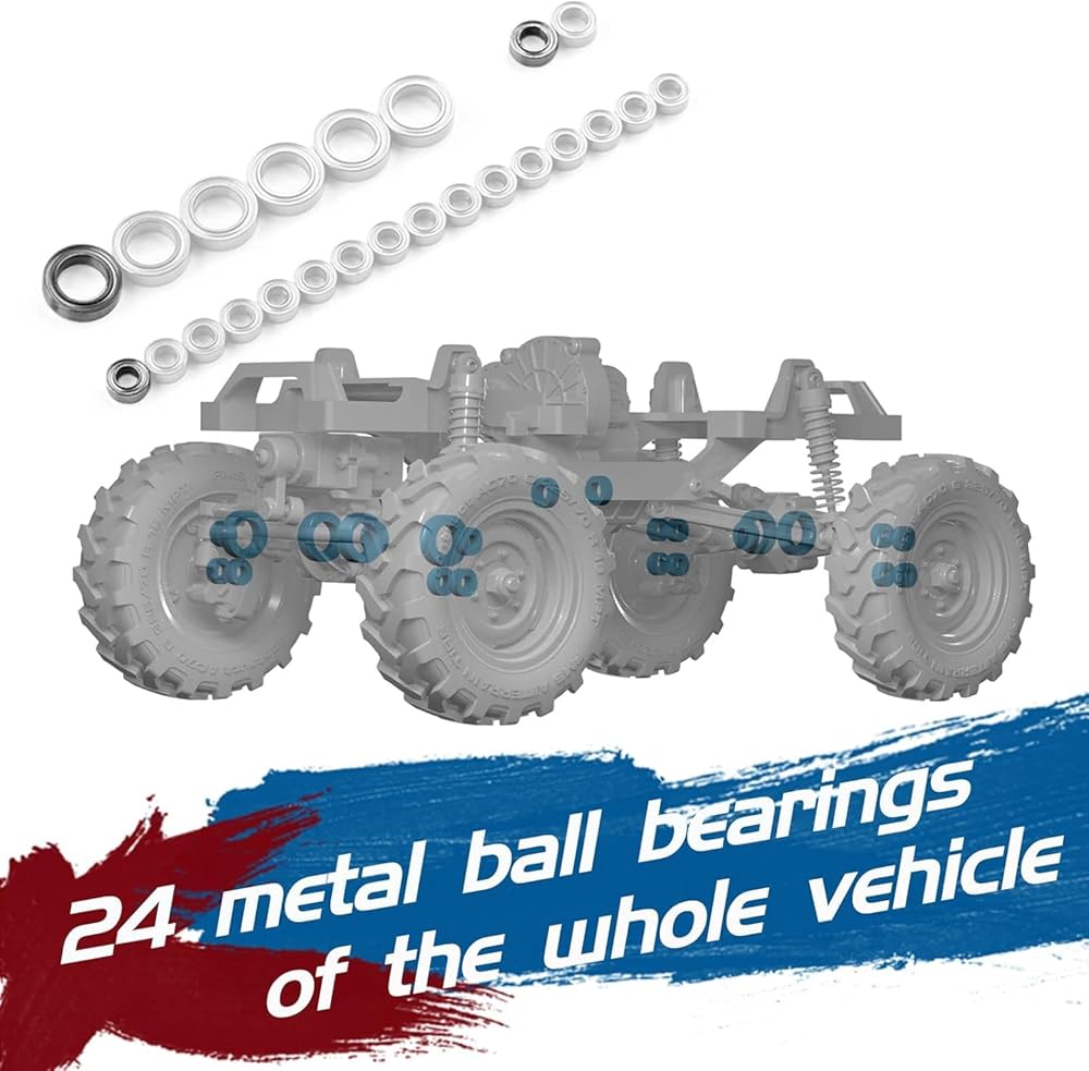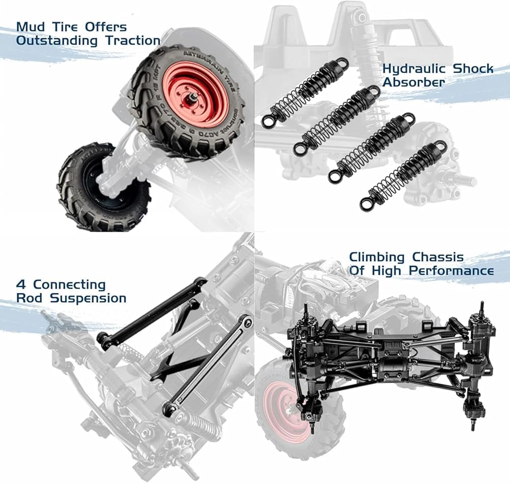 [Portal Axle + 24 Ball Bearings] Using non-load-bearing frame, portal axle, 24 ball bearings, 4-link suspension, etc., elevate the frame, reduce the loss of the car, prolong the life of the car, drive Faster speed and longer standby time.