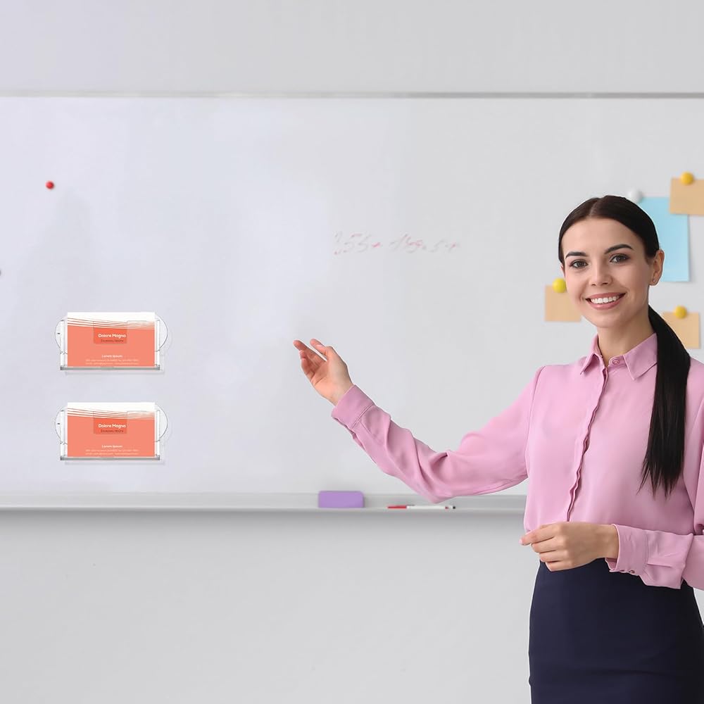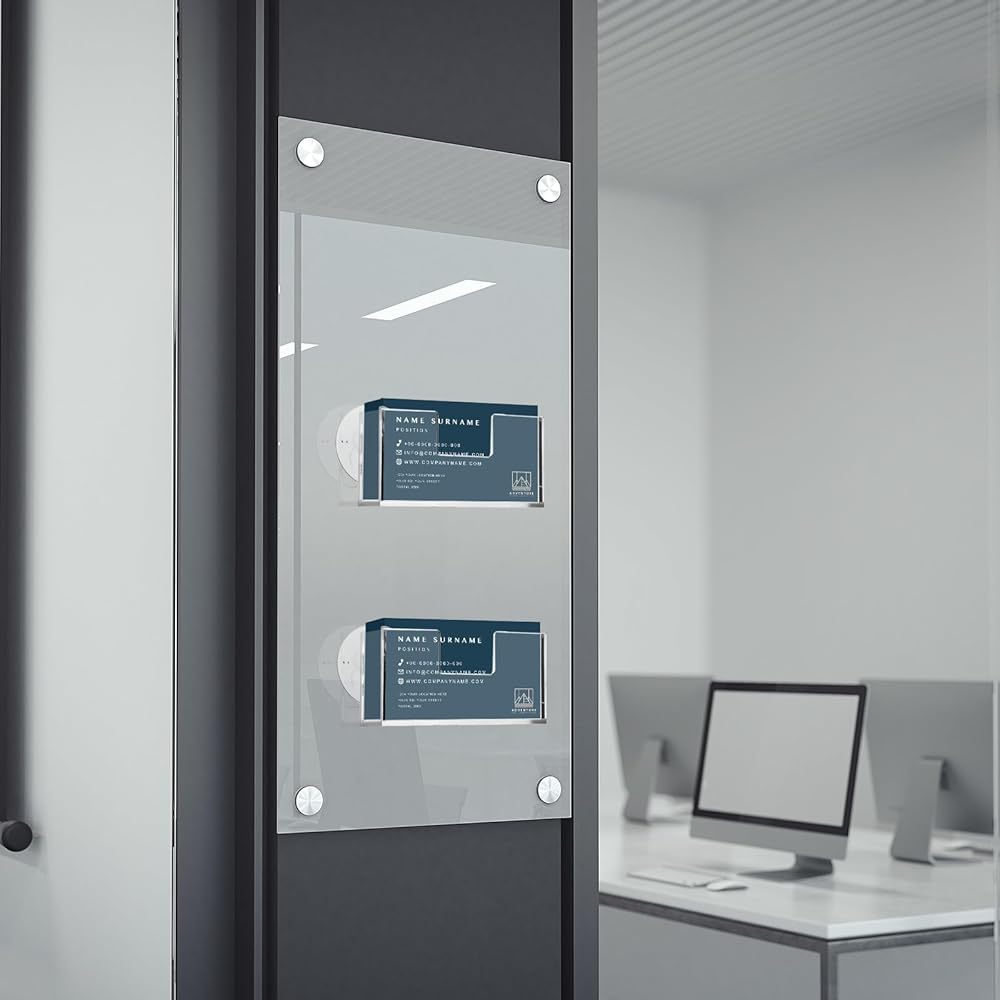 The package includes 2 acrylic business card holders wall mount. This provides better value and convenience as you can set up multiple display points or have an available backup anytime.