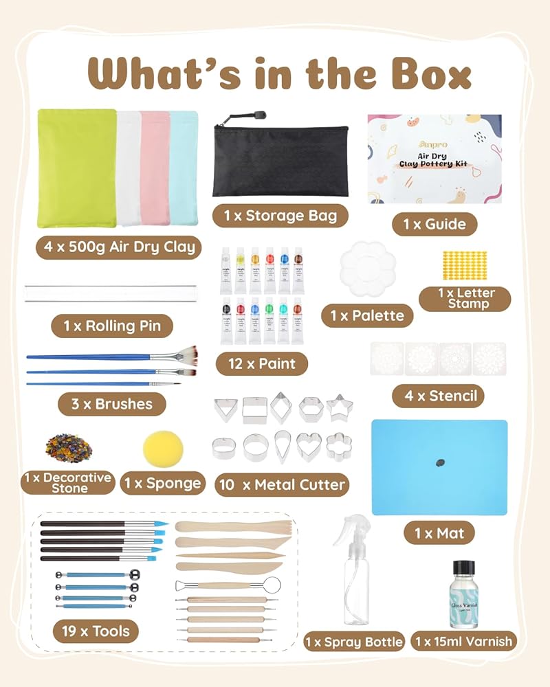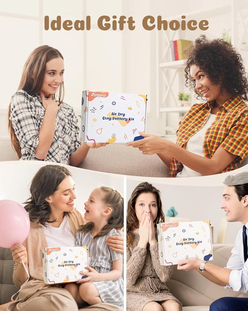 Whether you want to make unique gifts, home décor, or simply unleash your creative spark, the Pottery Kit, Air-Dry Clay Starter Kit is your perfect choice.