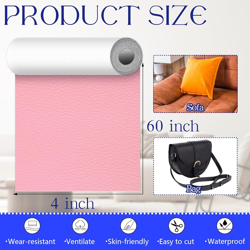 Leather Repair Size: Our 4 x 60 inch self-adhesive leather repair tape come in enough size, enough length, and the right width for you to cut any way you want to fit your DIY shape