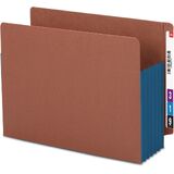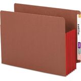 Smead End Tab File Pockets are favored by law firms and other document intensive industries. Pockets will hold standard letter size top tab folders without bulging. Accordion style sides expand 5-1/4" and hold up to 700 sheets. File pockets take up minimal space, expanding only when extra storage capacity is needed. Entire gusset is reinforced with tear resistant material for extra strength and durability. Colored gussets help organize files by case or subject. 3/4" wide straight-cut tab is reinforced for frequently handled files. Includes 10 extra wide letter size (12-3/4" W x 9-1/2" H) end tab file pockets with 5-1/4" expansion. Contains 30% recycled content, 30% post-consumer material and is SFI Sourcing Certified.