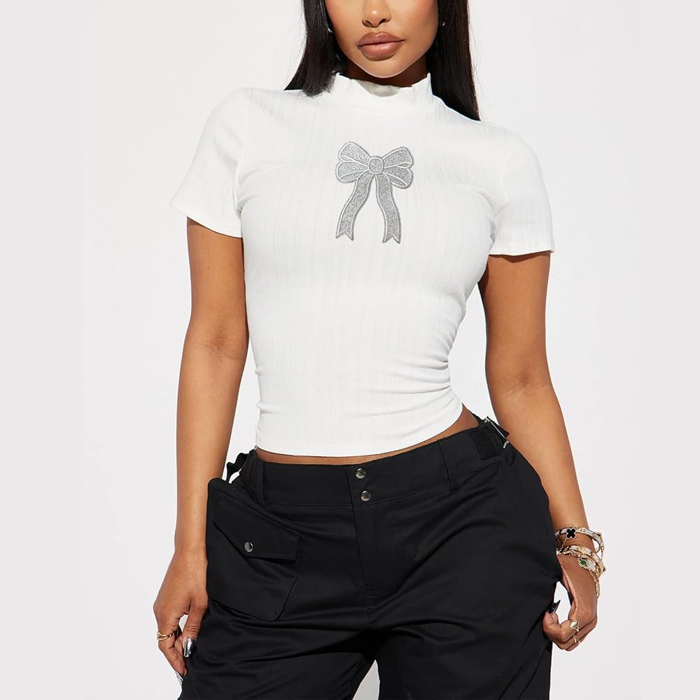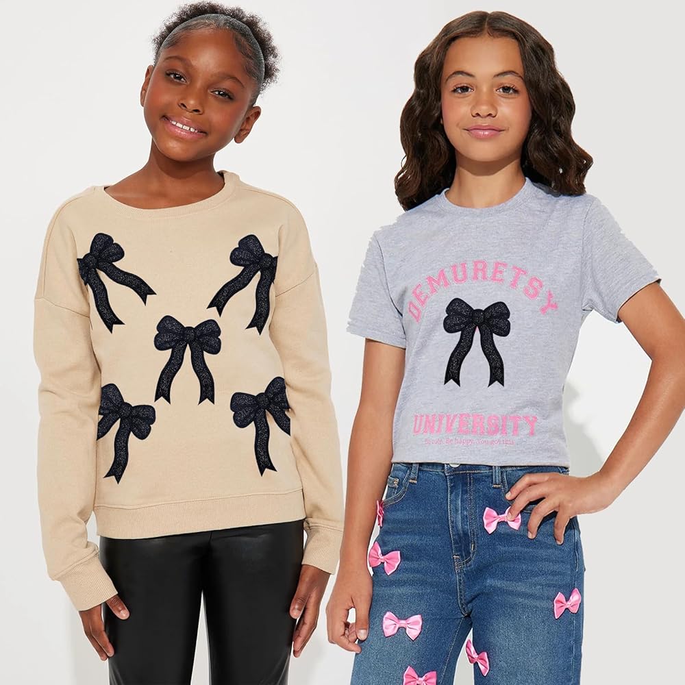 CY Iron On Patches Glitter 5Pcs Sweatshirt Side Bow Embroidered Patch Cute Sequin Applique Sew On Fabric Patches Shiny DIY Decorative Accessories Lovely for Girls Women Clothes Backpacks Jackets,Black