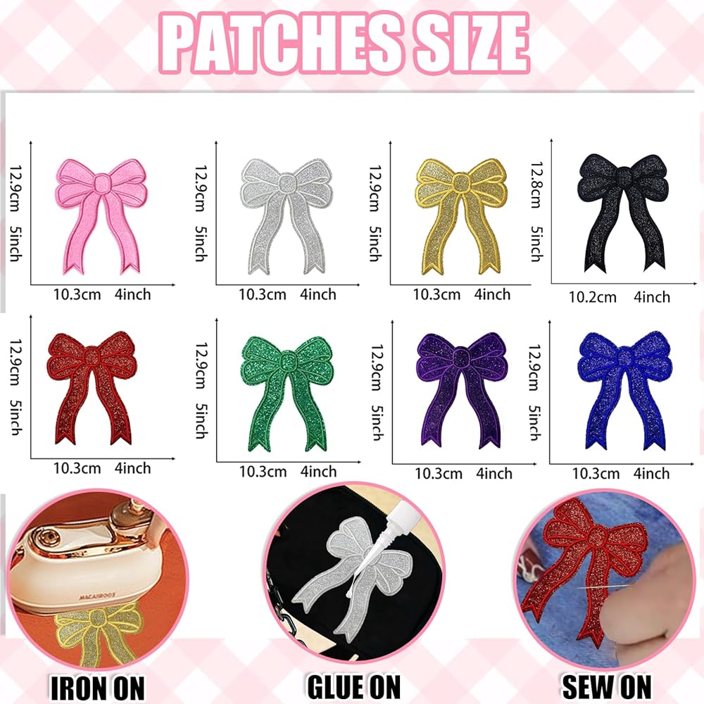 5 Glitter Sequin Bow Patches: A set of 5 navy stunning glitter side bow embroidered patches, designed to add sparkle to any fabric project.