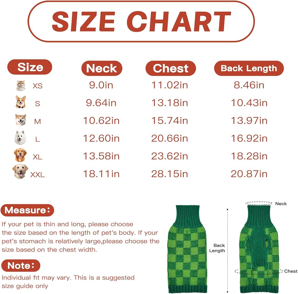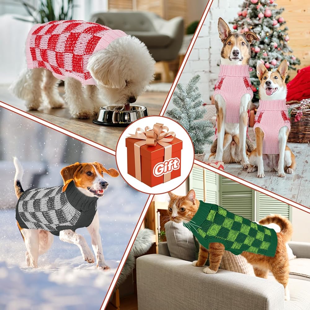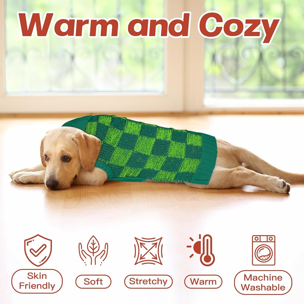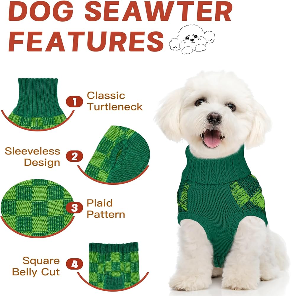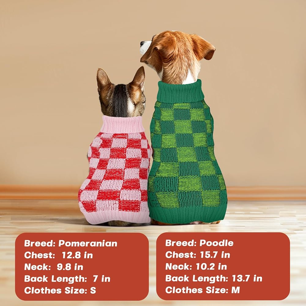 Dog Sweater Sizes XS to XXL, Christmas Dog Sweaters Suitable for Small to Large Dogs,Warm, Soft Dog Turtleneck Sweater Plaid Perfect for Fall, Winter, Everyday Wear Outdoor Walks(Green,XS)