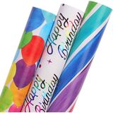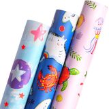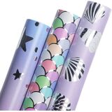 Ribbli 3 rolls quality unicorn 17inch mini roll wrapping paper assortment,suitable for girls kids birthday and baby shower gift wrapping