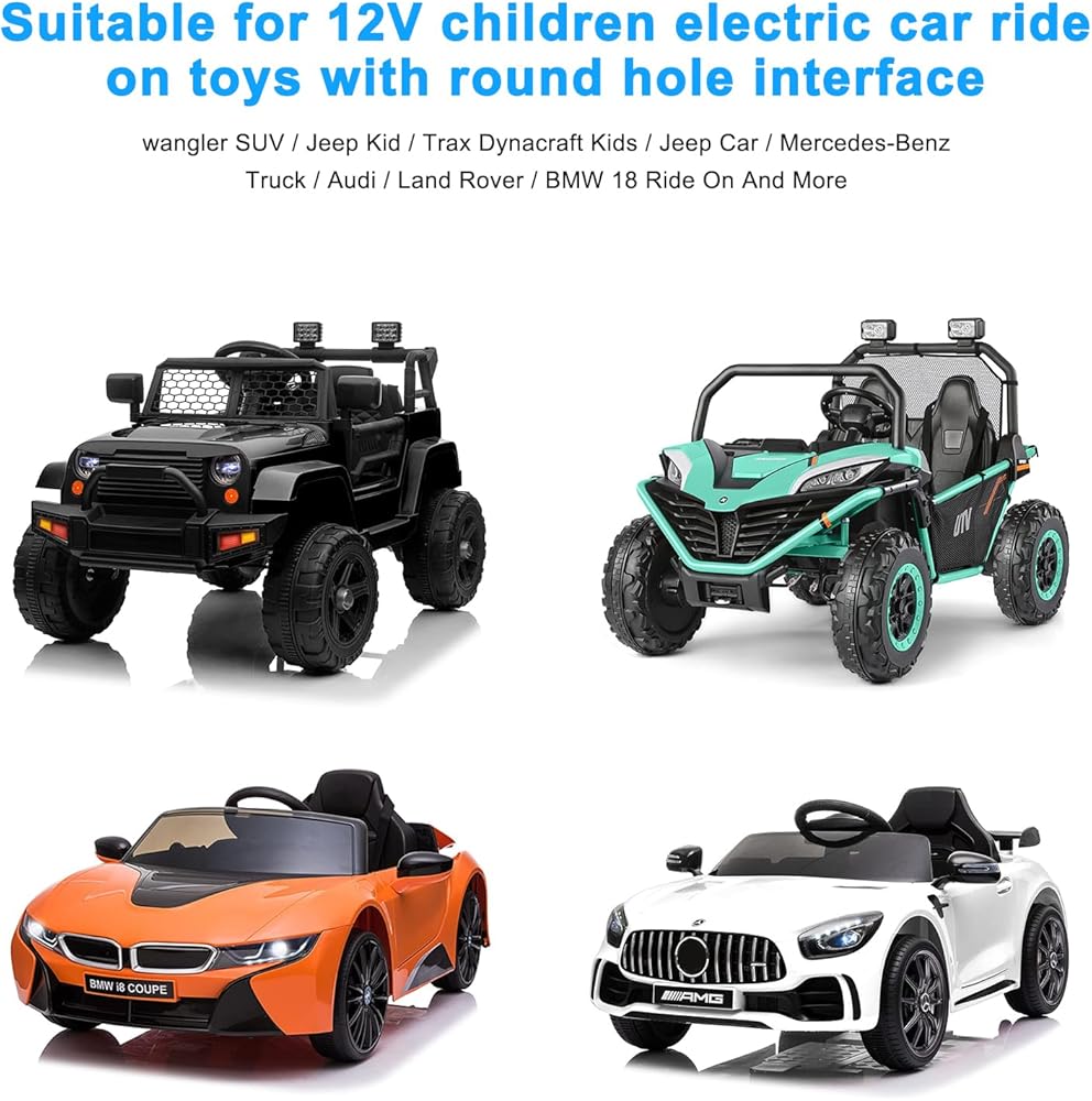 Power Wheels Charger Compatibility Models: for Best Choice Product, Kid Trax Toddler Quad Hello Kitty SUV, Dynacraft, Mercedes-Benz Range Rove Huffy Ride-On Cars(NOTE: Compatible with 12V only, Please purchase after checking)