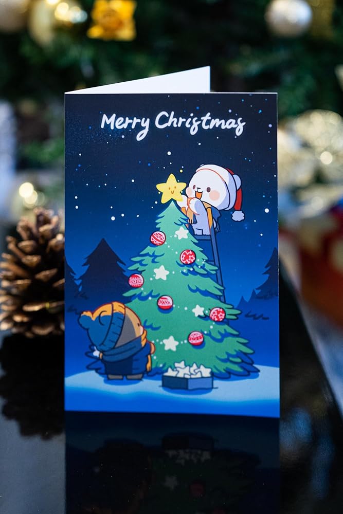 Milkmochabear Christmas Card 4-Pack Bundle Authentic Merchandise 4" x 6" Inch Blank Inside Milk and Mocha Greeting Cards with White Enevelopes Unique Designs for Family Friends Partners Cute Adorable