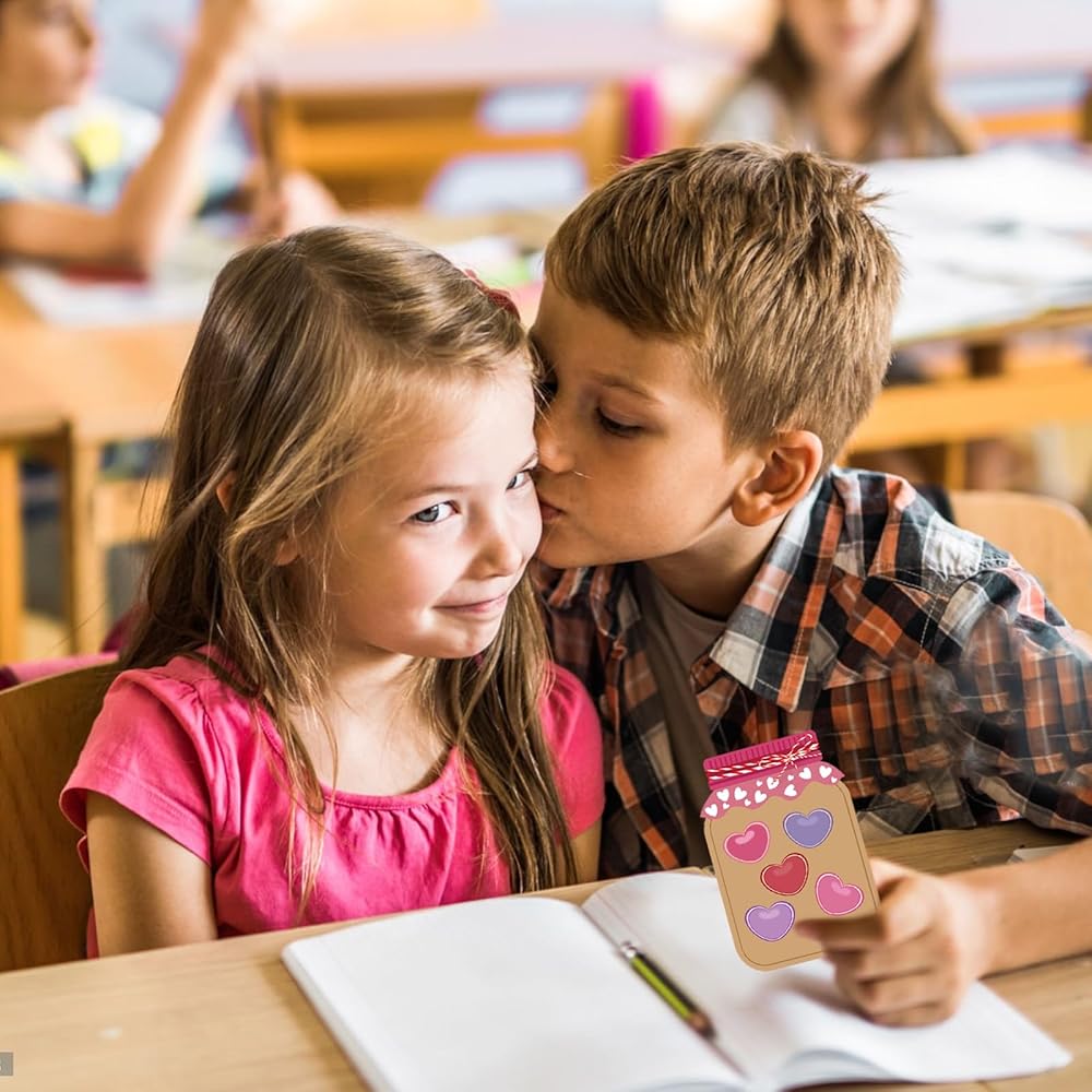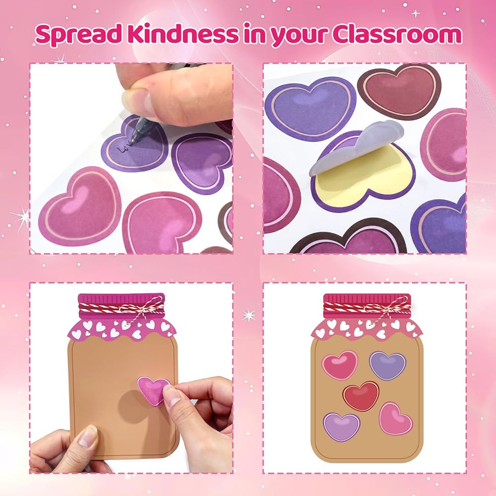 60 Sets Valentine's Day Love Candy Jar Craft Kit DIY Love Heart Candy Jar Valentine's Day Craft Fun Activity for School Classroom