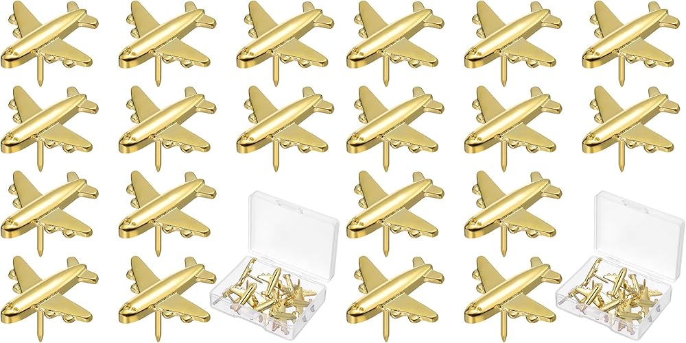 Quantity: This creative airplane pin comes in sufficient quantity, with 24 gold thumb tacks that can be used to decorate dull bulletin boards, mark travel maps, and display many photos family and friends
