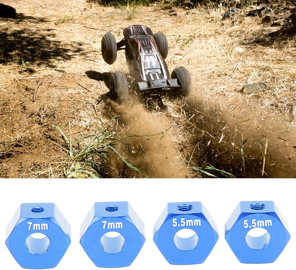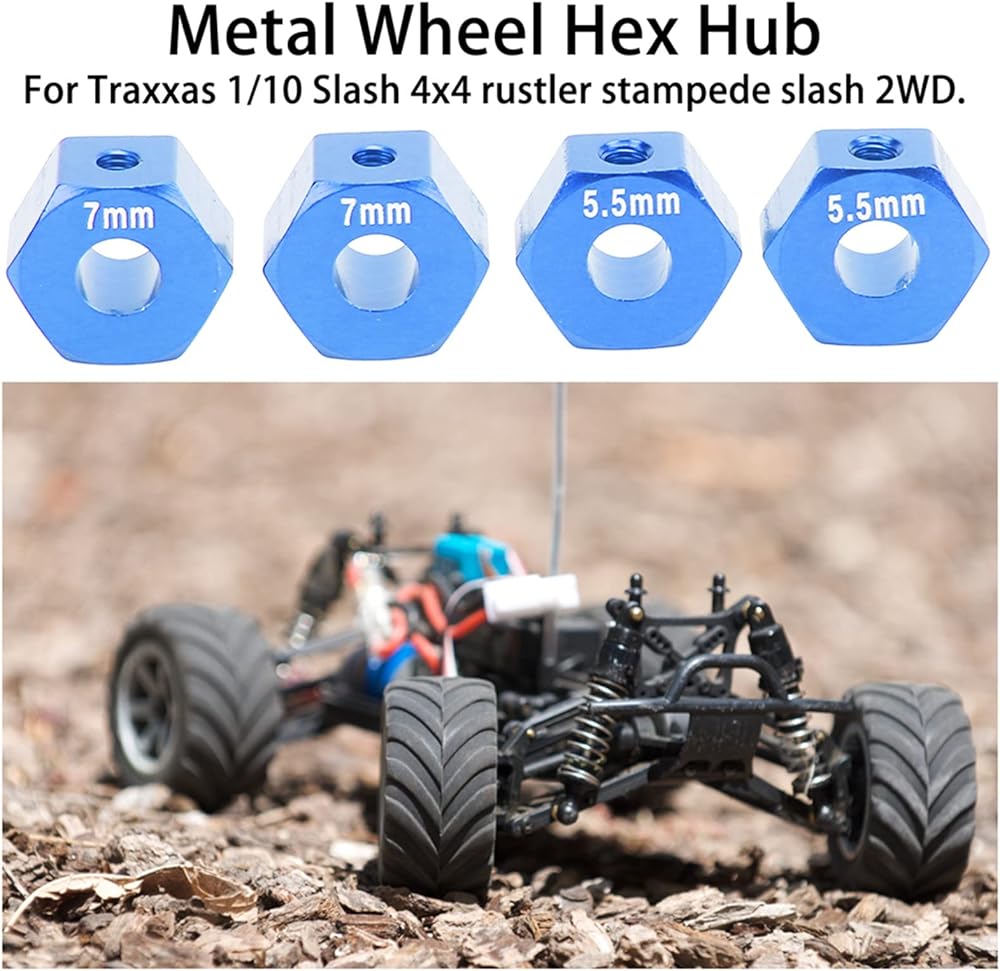 4Pcs RC wheel hub adopts premium aluminium alloy material with sturdy structure, also very durable for long term using. It suits for Traxxas 1/10 Slash 4x4 rustler stampede slash 2WD, which can enhance the overall performance.