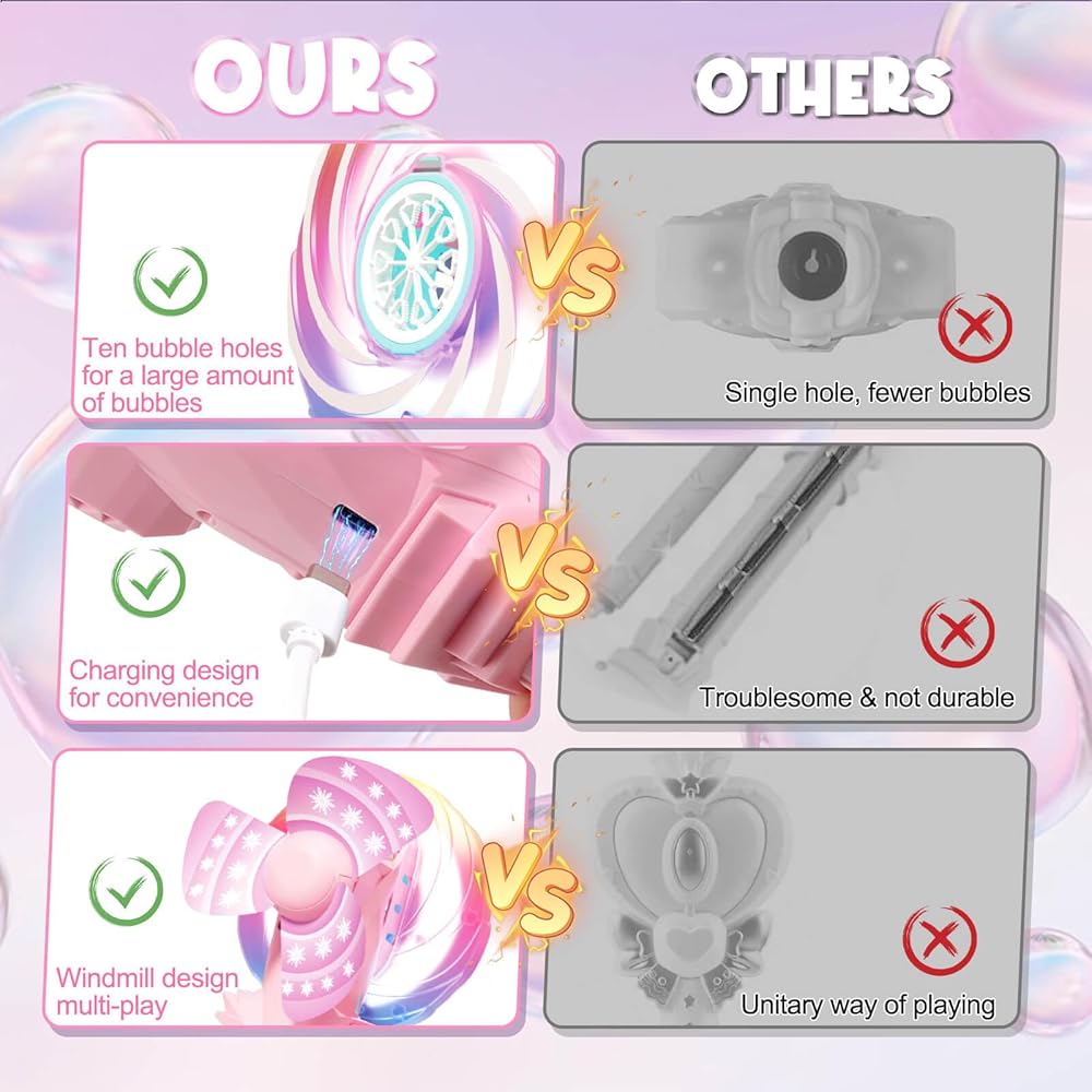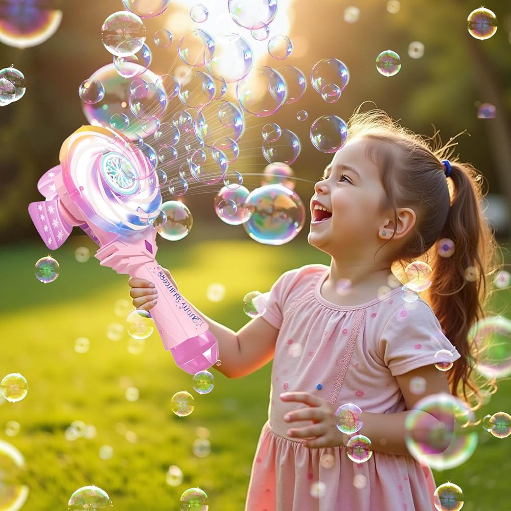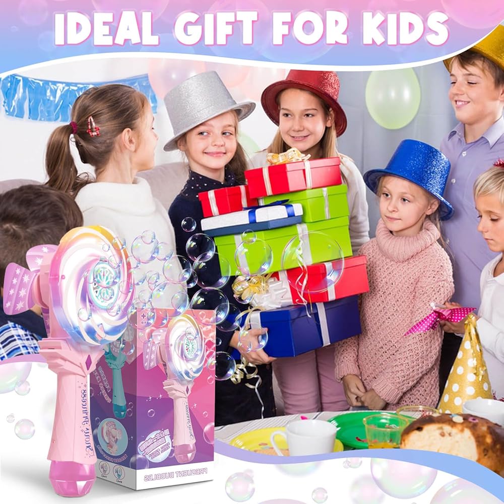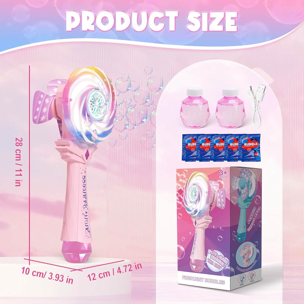 Bubble Wands for Kids Age 4-8: Windmill Light Up Automatic Bubble Machine Rechargeable With 2 Bubble Solution Outdoor Party Birthday Toys for Toddlers, Gift for 3 4 5 6 7 8 Year Old Girls, Pink