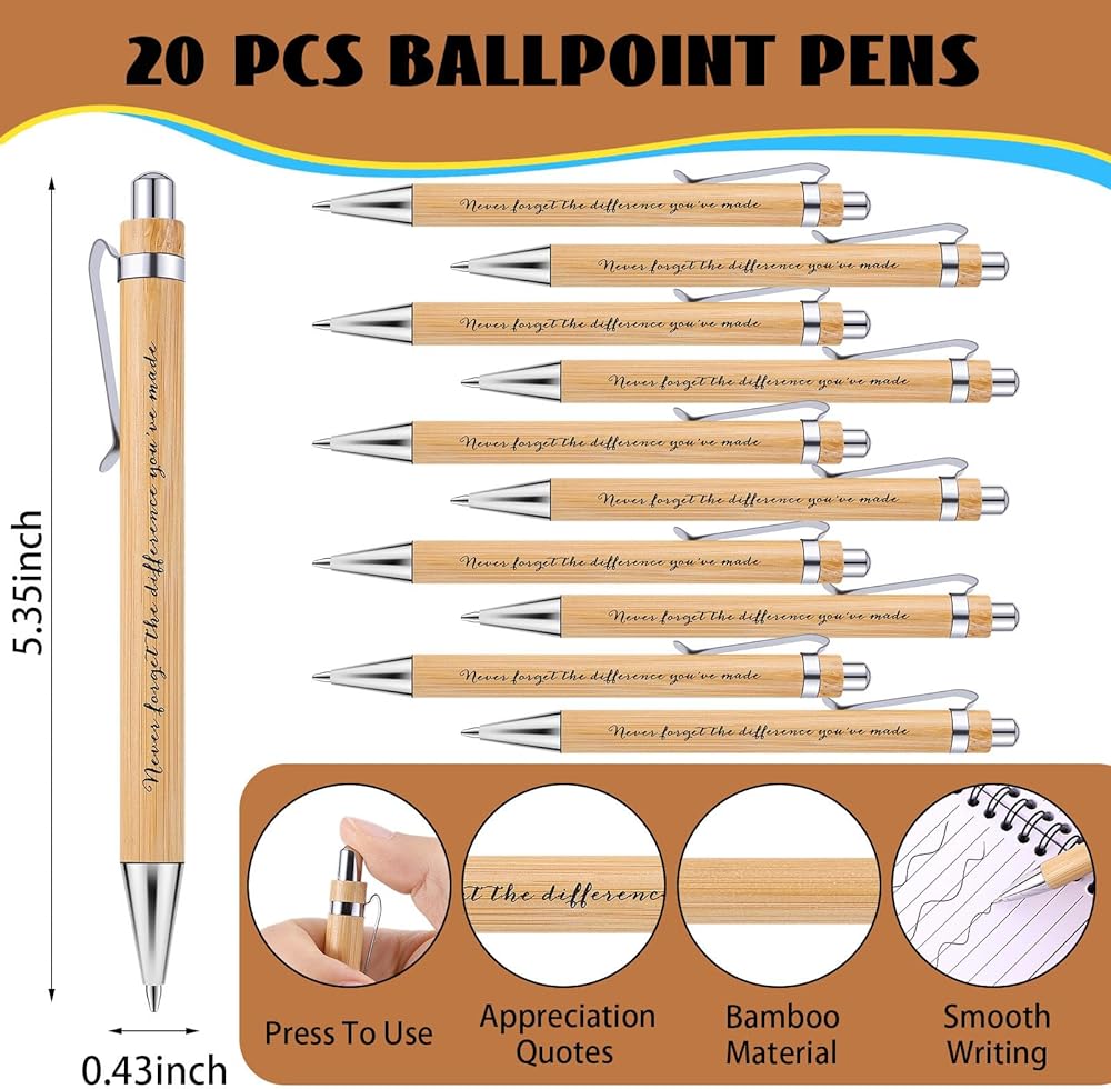 20 Sets Employee Appreciation Gifts Inspirational Spiral Notebooks with Sticky Notes Notepads Motivational Bamboo Ballpoint Pens for Nurse Coworker Teacher