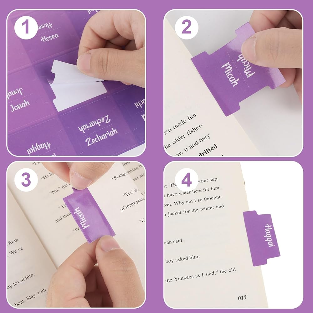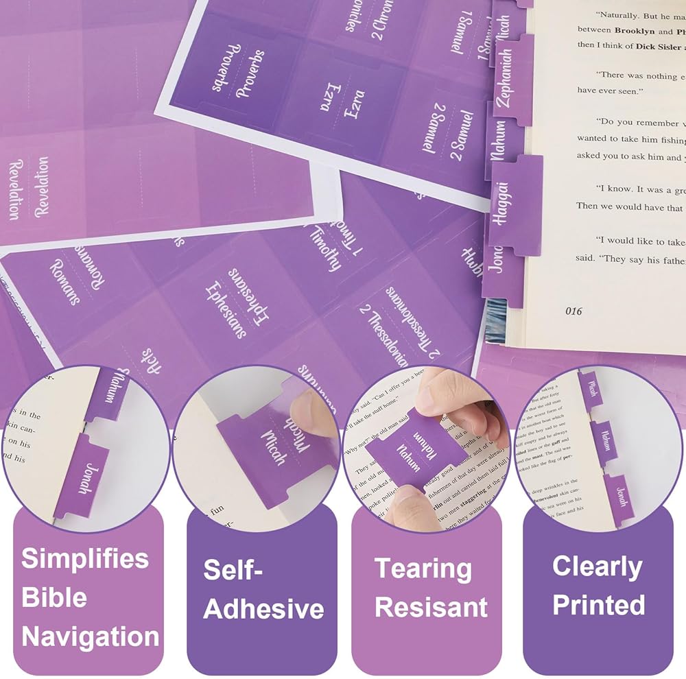 Premium Quality:Bible labels add a stylish touch to any bible in the perfect purple color and are designed to be sturdy, tear-resistant and long-lasting. The matte finish provides an elegant touch for a classy look. Bible labels are made from the latest materials. If you accidentally stick one of the labels to the wrong page, you can carefully remove it without damaging the page and then reattach it to the correct page
