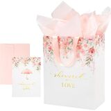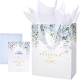 Perfect Size To Fill Goodies: This large wedding gift bag measures 10" x 13" x 5" with 3 pcs white tissue paper and 1 5" x 7" bridal shower card in the pack. Perfect for holding candles, figurines, a scarf, standard sized book, video game or DVD.