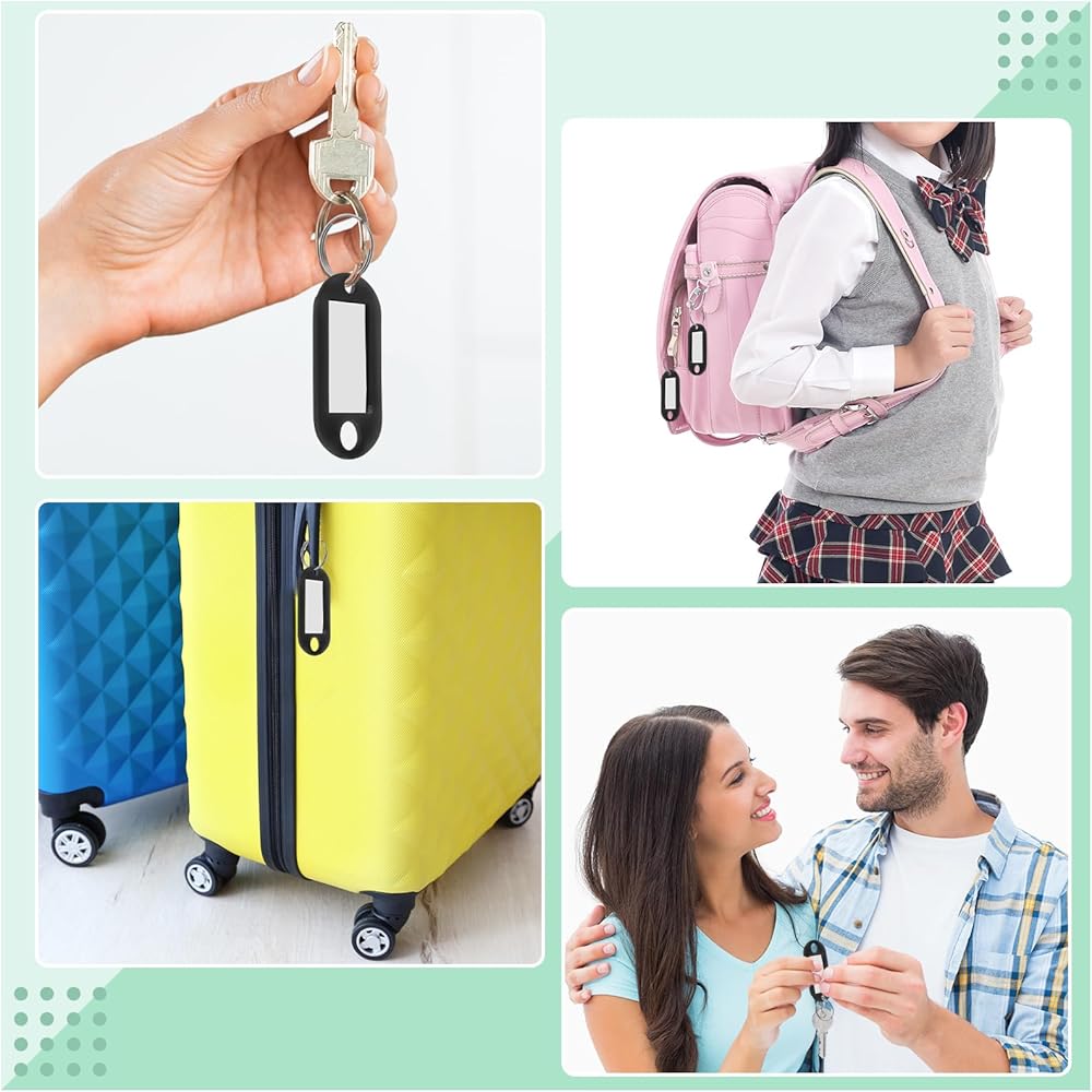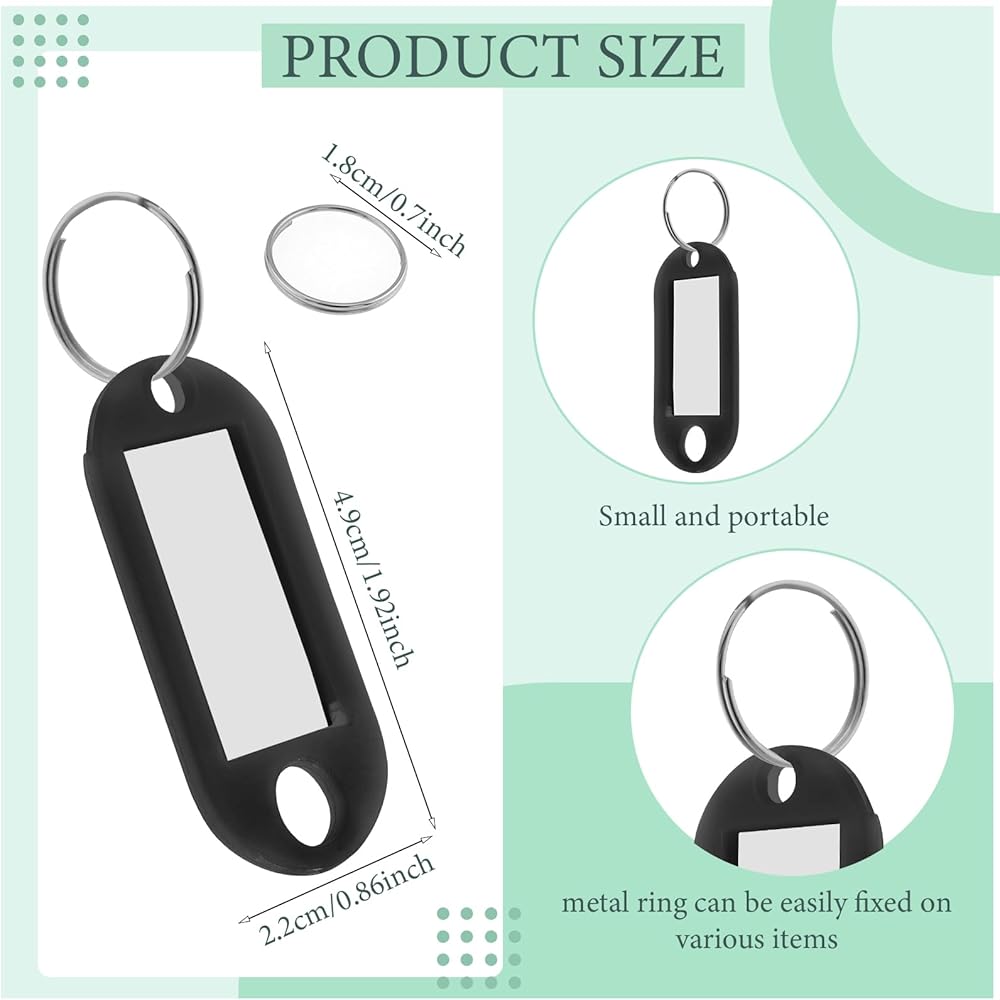 Features: Nice gift choice: Keychain tags can be nice and thoughtful gifts for friends, teachers, coworker, neighbors, family members and so on to express your love and care. Suitable and lightweight: Plastic tags are suitable and lightweight, so you can use them without taking up too much space. Specifications: Material: plastic, metal, paper Color: black, green, pink, orange, sky blue, purple, yellow, deep blue, red, white Size: Key tags: approx. 1.85 x 0.79 inches/ 4.7 x 2 cm Diameter of key ring: approx. 0.71 inches/ 1.8 cm Inner labels: approx. 1.26 x 0.67 inches Package includes: 50 x Keychain tags with labels Notes: Manual measurement, please allow slight errors on size. The color may exist a slight difference due to different screen displays. Small parts included, please watch out for winding risk. The pointed parts may include, please use them carefully, and keep away from child.