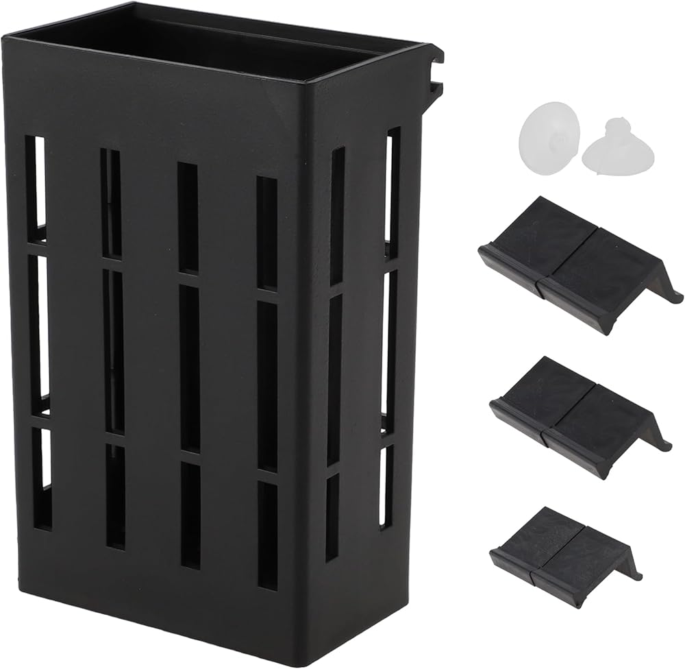 Aquarium Plant Holder, Fish Tank Plant Holder, Aquarium Plant Holder with Hooks and Suction Cups, Aquarium Plant Pots for Hanging Plants and Plant Cultivation, Black, 1 Set