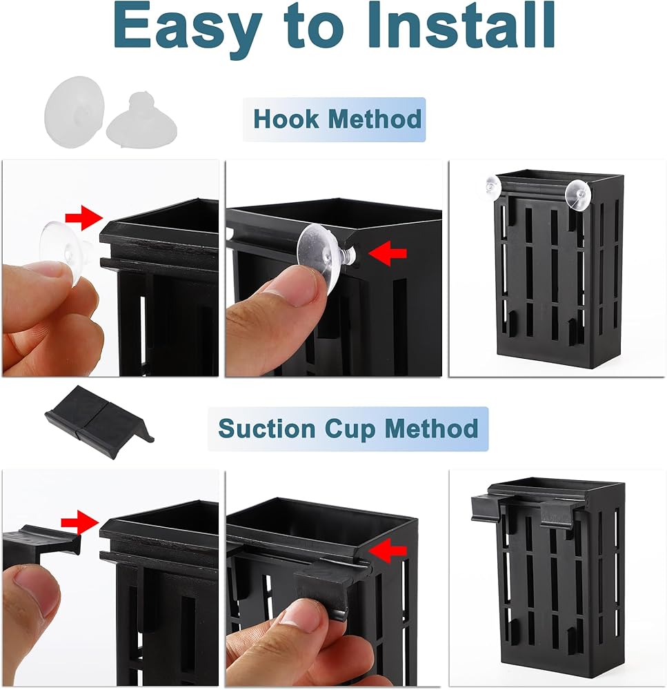 Unique Design - The aquarium plant holder with hooks has holes and gaps at the bottom to facilitate water circulation and root growth, promoting the growth of plants in the aquarium. The aquarium plant basket is equipped with hooks and suction cups, with two ways to hang