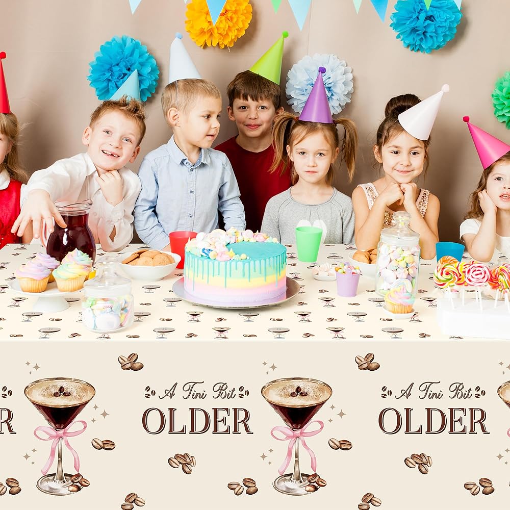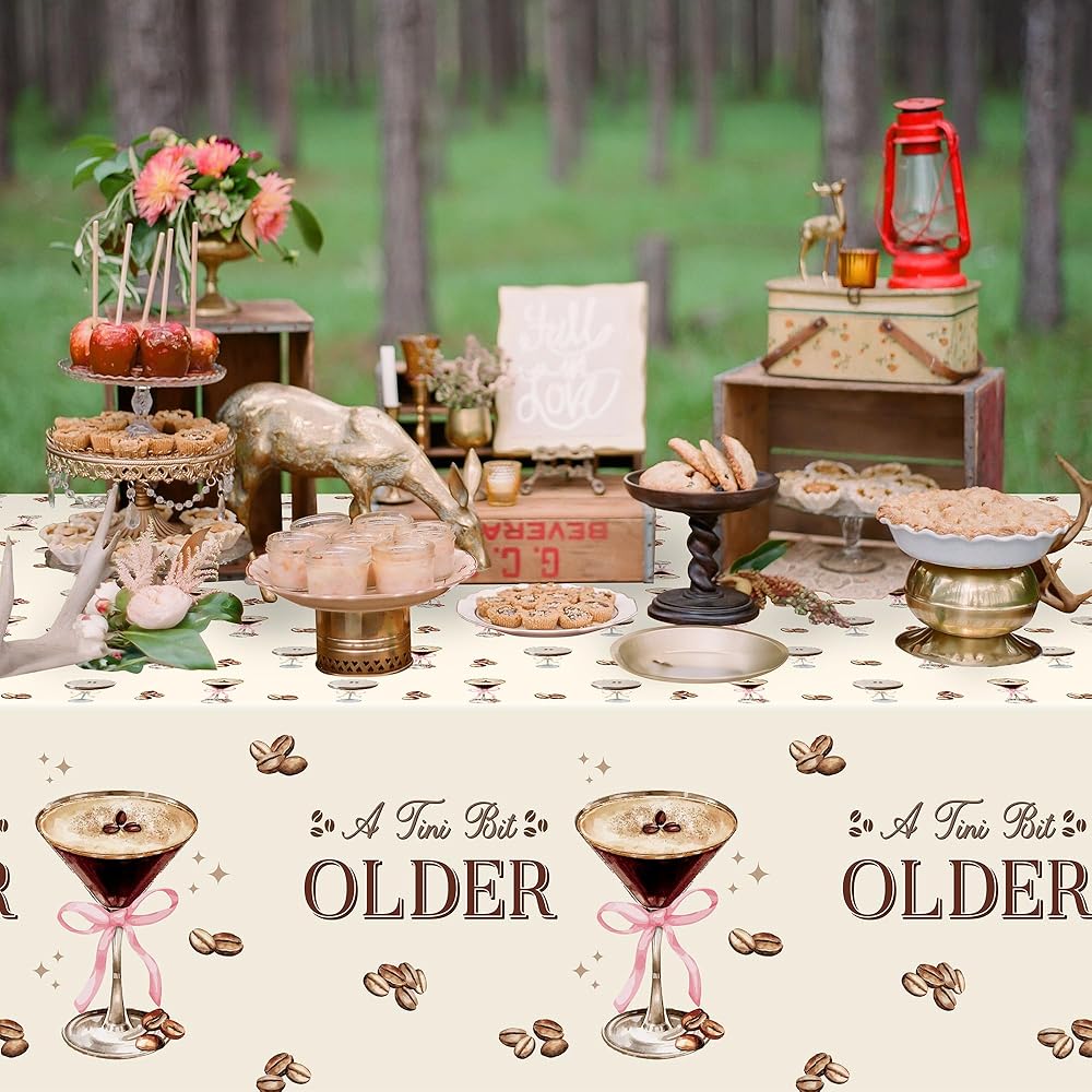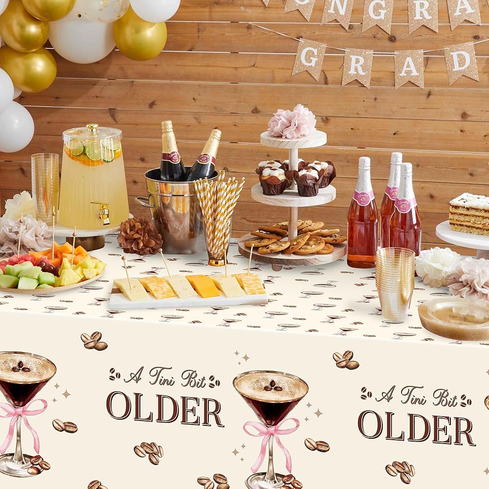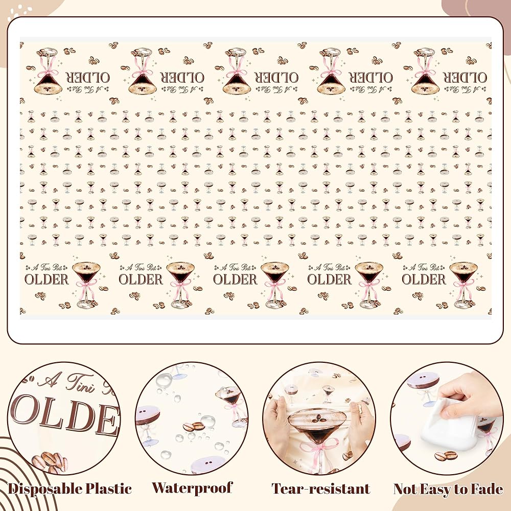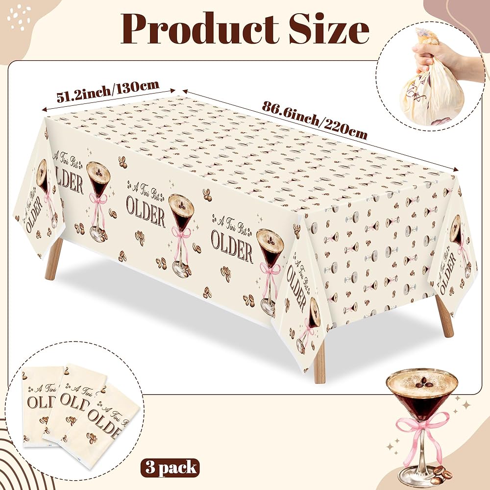 3Pcs Coffee Martini Tablecloths A Tini Bit Older Birthday Table Covers Coffee Espresso Martini Themed Plastic Disposable Rectangular Party Decorations Supplies for Birthday Bachelorette Party