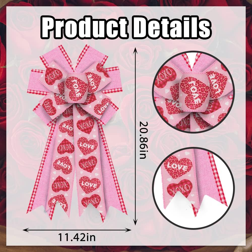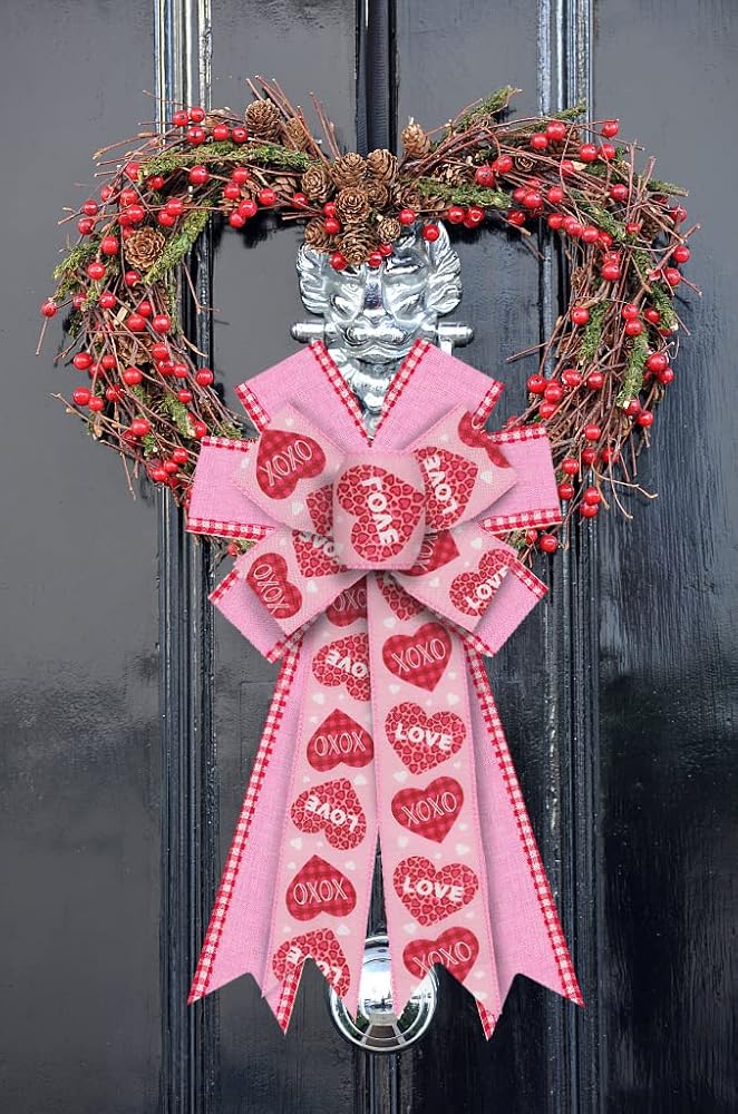 You can use our beautiful Valentine's Day bow to decorate your holiday farmhouse, garland, front and back door, wreath, mailbox, DIY crafts, staircases, railings, tables, chairs, candles, doors, porches, windows, lamp posts and baskets, etc. Suitable for various occasions, adding strong Valentine's Day atmosphere for you. And you can also give it to your family and friends as gifts.
