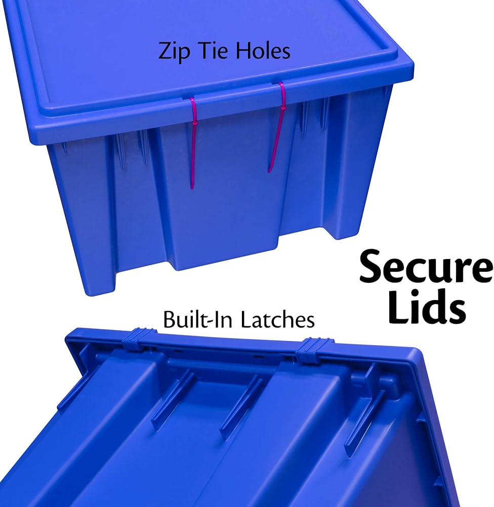 Akro-Mils 35225 Nest and Stack Plastic Storage Containers and Distribution Totes are heavy-duty industrial strength transportation and material handling boxes designed to meet all your storage needs. These totes are made of high-quality, industrial-grade polymers that won't rust, corrode or bend, providing long-lasting performance and durability. The materials are easy to clean, making them perfect for storing a variety of items. Containers stack with or without lids, making them perfect for garages, attics, sheds or barns where space is at a premium. Turn tote 180 degrees to nest when not in use to save on storage space. These totes are great for storing toys, sporting equipment, camping supplies, and more. They are also perfect for use in cafeterias, food processing operations, chest freezer organization, and outdoor food festivals. Protect your items from impact and water damage during use as transportation boxes. These heavy-duty containers have a longer service life, resulting in lower replacement costs than alternative products. Optional lids and label holders are available (sold separately) for added security and organization. The lids feature latches and tie holes for extra security, while the label holders clip into the lip of the tote on all four sides.
