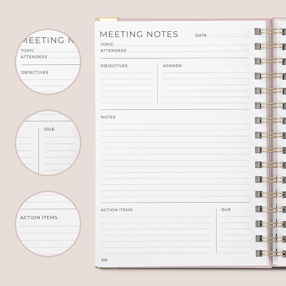 Aesthetic Meeting Notebook by ZICOTO: The Perfect Addition To Your Busy Work Life! It's time to elevate your work life to a new level! Thanks to ZICOTOs' professional planner notebook your client and business meetings just got an upgrade. The meeting notebooks are perfect for storing all your notes, brainstorming ideas, pitches, objectives, as well as action items and due dates. Having all your notes in one place helps you to manage responsibilities at work, tackle all your to do's and objectives, finally boosting your productivity! Note taking has never been easier and better organized! Finally you can always be perfectly prepared for your meetings & appointments. Across 210 pages, the 8.5x6.4” business notebook offers ample space for you to follow along and jot down objectives, agendas, notes, as well as action items & due-dates. Specifically designed for a professional, yet stylish appearance! With its golden edges and modern lettering the beautiful notebook is truly a joy to bring along to meetings. Made of premium material with a top-notch hard cover, the meeting planner is a durable support in your meeting note organization. ZICOTOs' meeting planner - a notebook that exudes professionalism, aesthetics and pure efficiency.