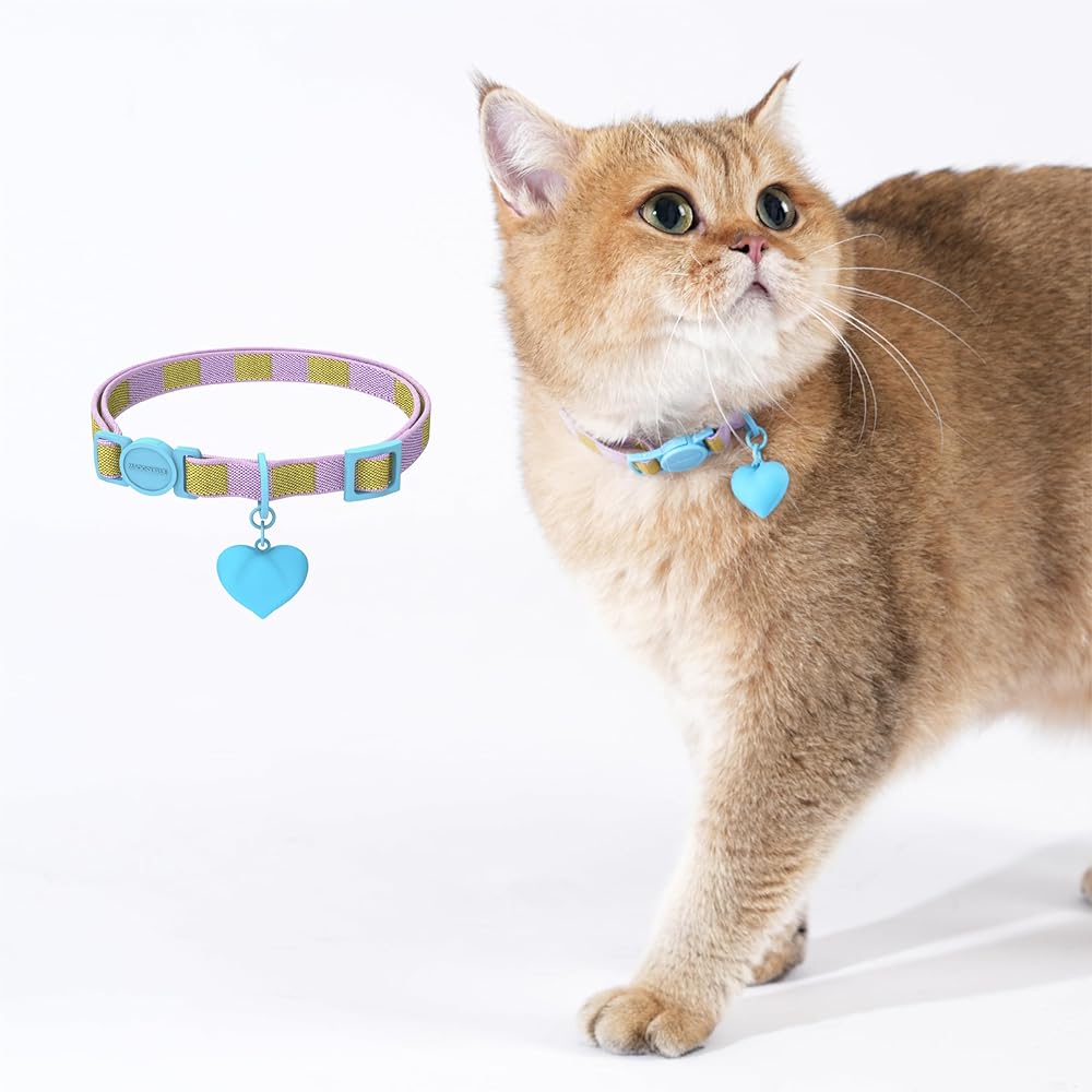 【High Stretch Cat Collar】High stretch polyester material breakaway cat collar with with heart pendant, our cat collar is only 0.38 ounce, light weight, skin-friendly and safe.