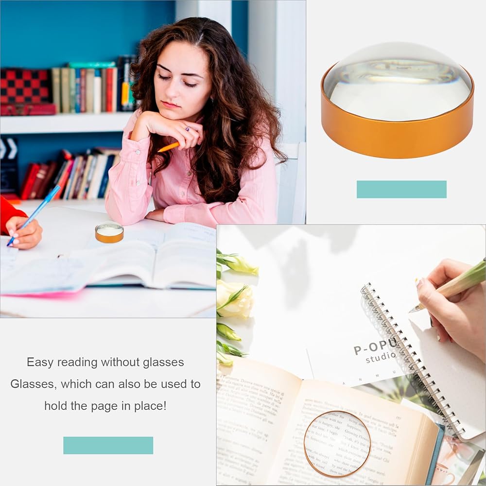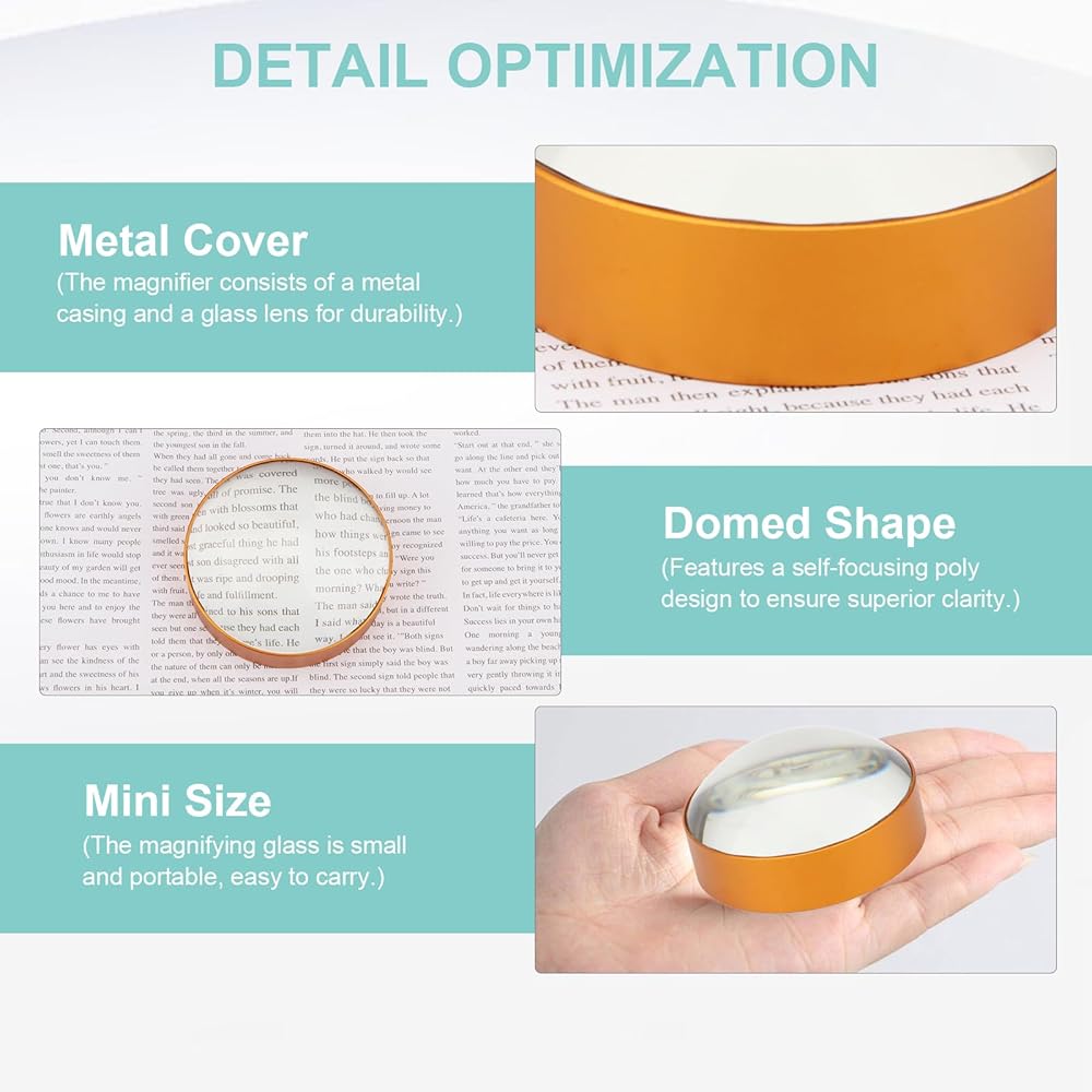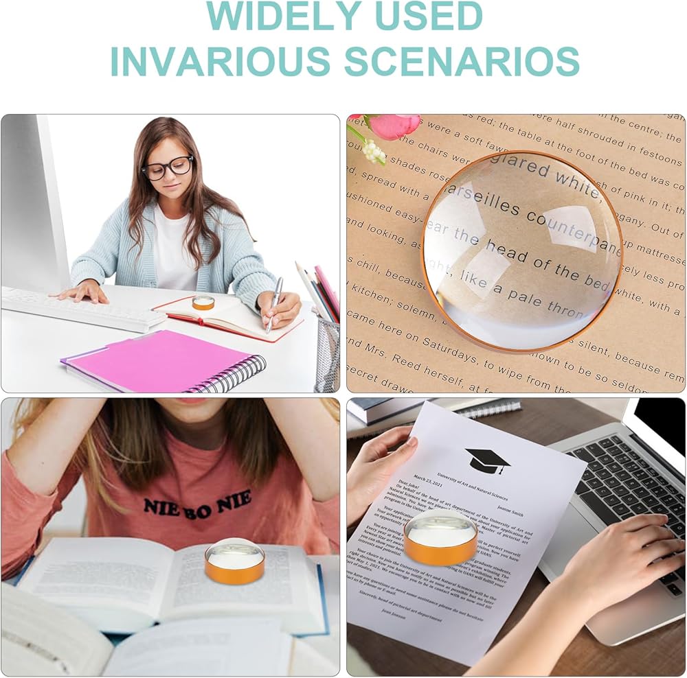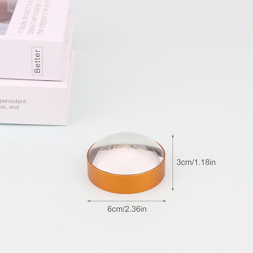 Clear Crystal Dimension: The paperweight magnifying glass can magnify up to 6X, 62mm in diameter, mini size, metal housing, crystal clear lens, clear and undistorted, scratch resistant and comes with a cleaning cloth.