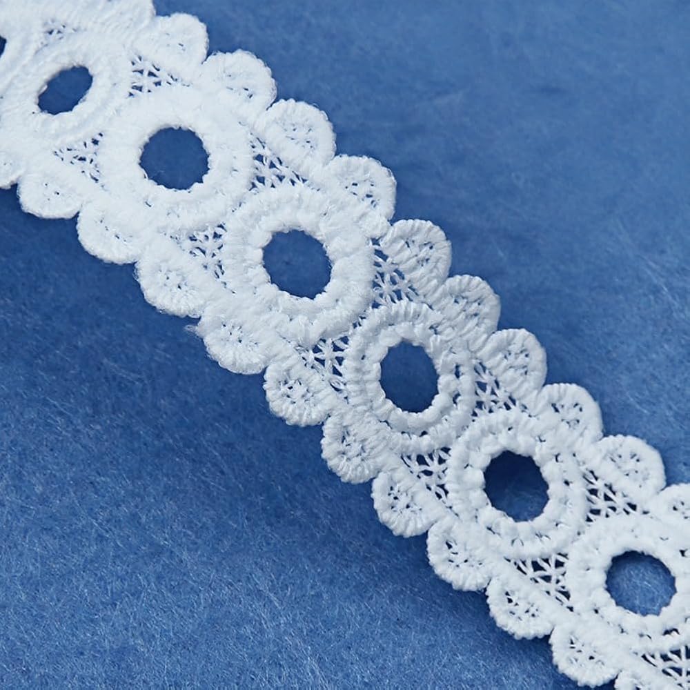 The lace trim is made of soft and durable polyester, pure white color.