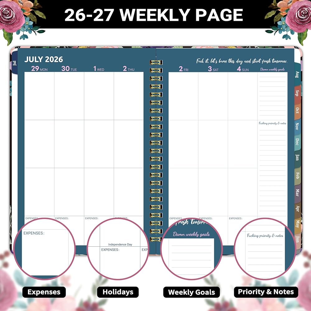 Planner 2026-2027, Fu-ck It Academic Planner 2026-2027 for Women, JULY 2026 - JUNE 2027, 6.5" x 8.5", 12-month Funn-y Weekly and Monthly Planner, 26-27 Calendar Planner with Badas-s Quotations, Colorful Tabs, Gifts for Women
