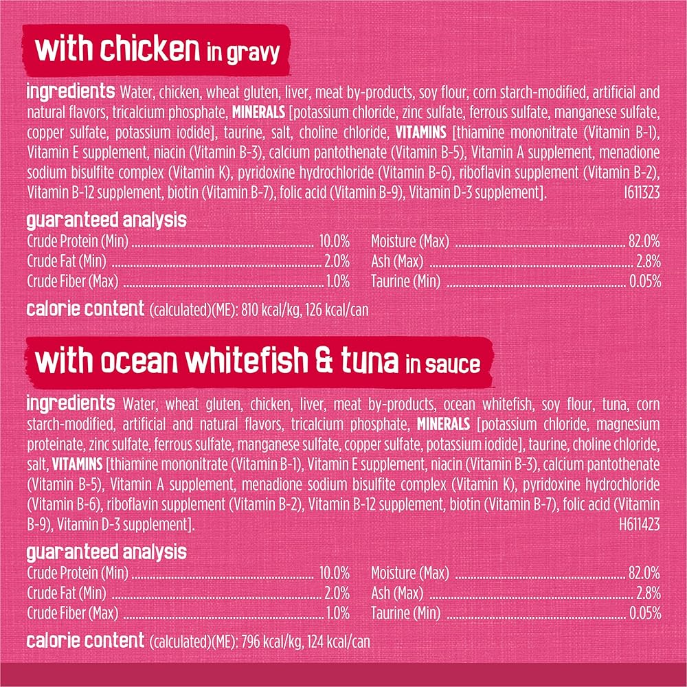 Shredded soft cat food chunks offer a tempting texture. Provides 100 percent complete and balanced nutrition for adult cats