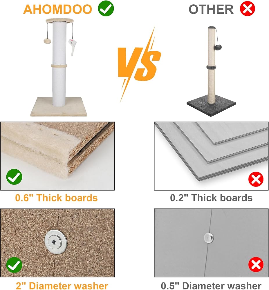 Extra-Tall Design: Large scratching post often feature an extra-tall design, providing cats with an extended vertical surface to stretch and fully engage their muscles. 34inch height allows cats to indulge in their natural climbing instincts and provides them with a secure and satisfying scratching experience.