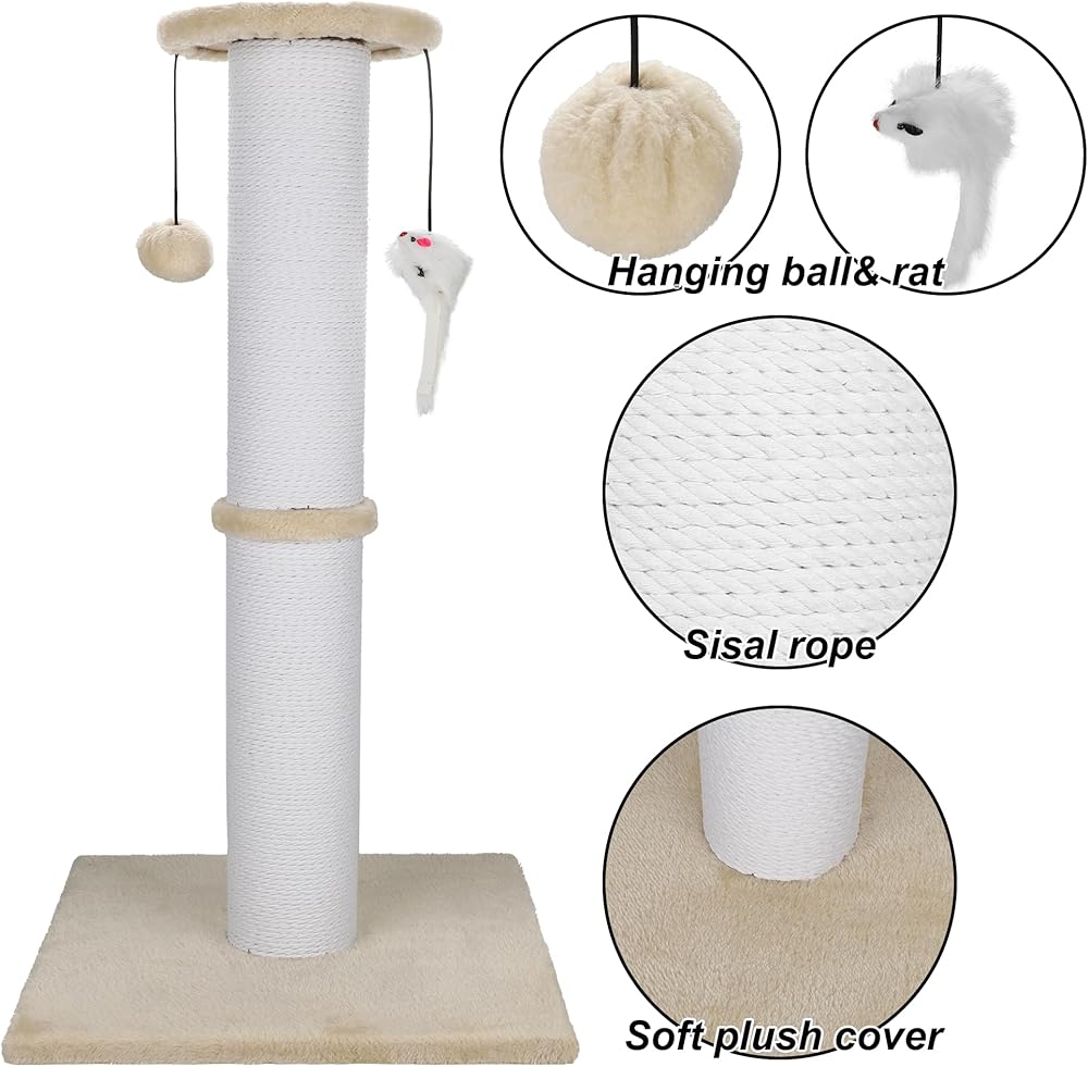 Cat Scratching Post 34 Inches Heavy Duty and Thicker Cat Scratching Post Sisal Rope with Hanging Ball and Mice Scratching Post for Indoor Cats and Adult(Beige)