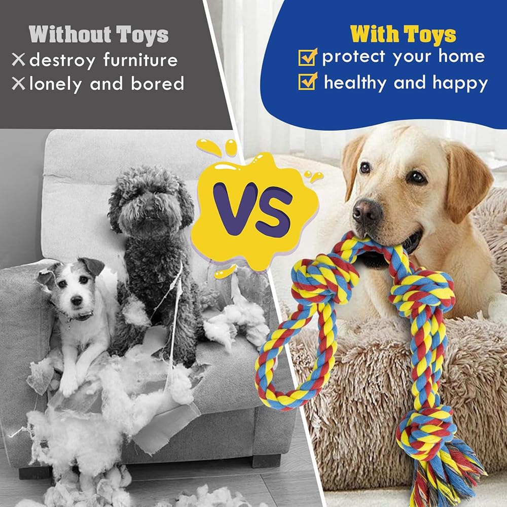 Perfect Dog Gift: Colorful design is perfect as a birthday or holiday gift for your dogs. It's more than just entertainment, it's also a means of exercise that helps keep our canine companions healthy. Rope dog toys are consumable and not truly indestructible. If your dog is a very aggressive chewer, we recommend play with supervision. If you are not satisfied with the use, you can contact us at any time and we will respond within 12 hours