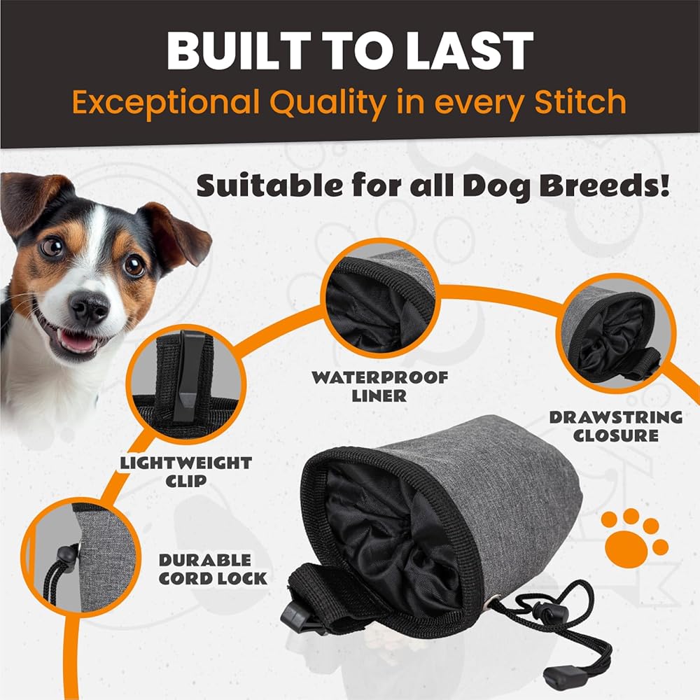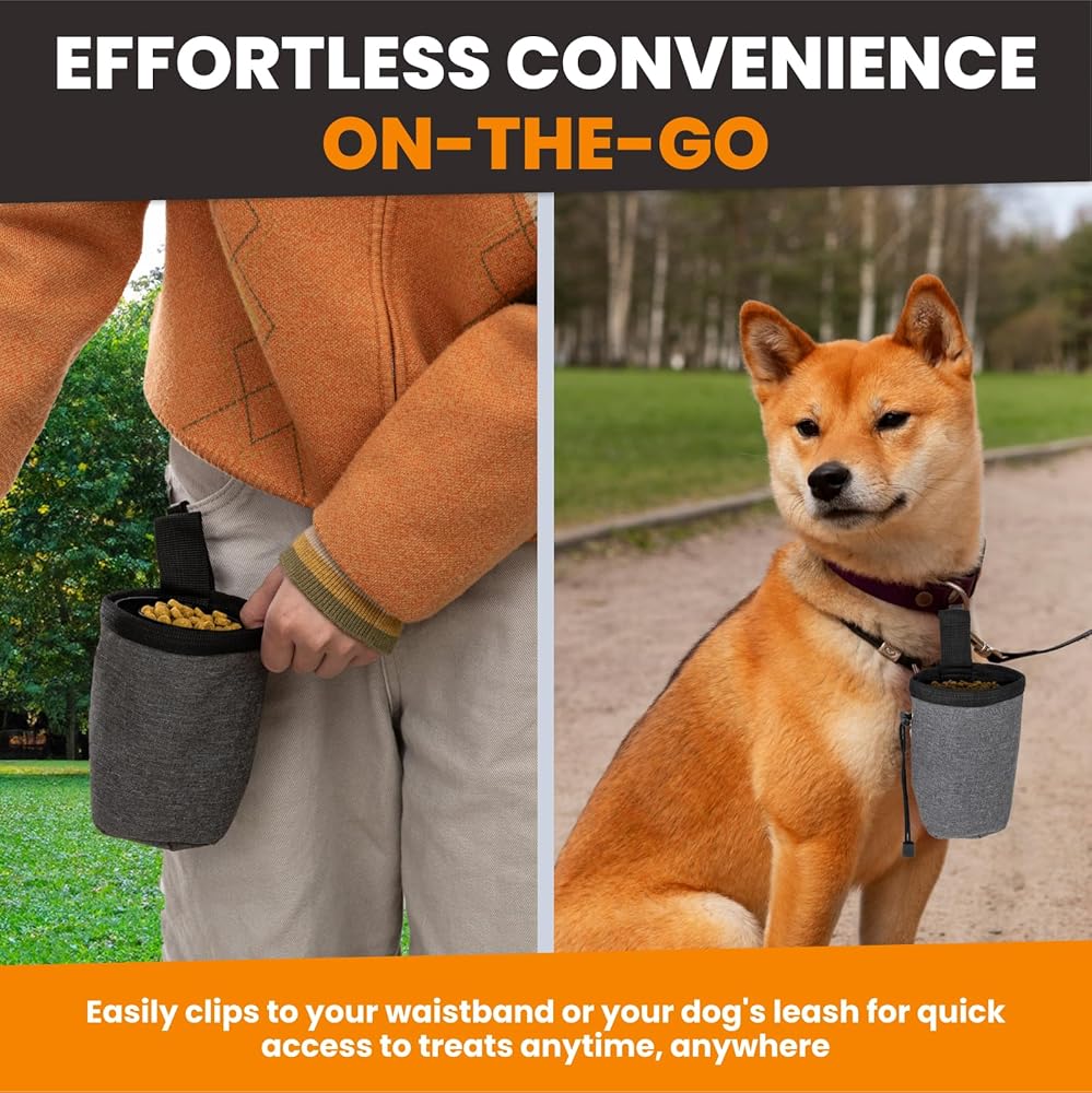 خفيفة الوزن ومحمولة - من السهل حمل حقيبة تدريب الكلاب هذه وتناسبها بشكل مريح في جيب أو حقيبة ، مما يوفر حلًا عمليًا لأصحاب الحيوانات الأليفة الذين يفضلون اتباعًا بسيطًا في إكسسوارات التدريب.