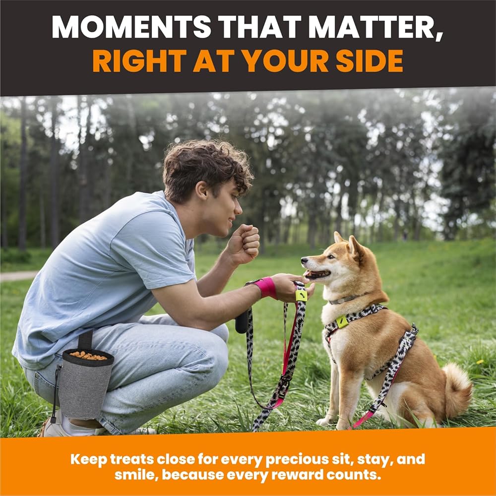 تخزين واسع لعلاج التدريب - يحتوي حامل علاج الكلب هذا على مساحة كبيرة للعلاجات ، مما يجعله خيارًا ممتازًا لجلسات التدريب أو المشي. يضمن تصميمه الفسيح أن لديك الكثير من المكافآت في متناول اليد لتعزيز السلوك الإيجابي.