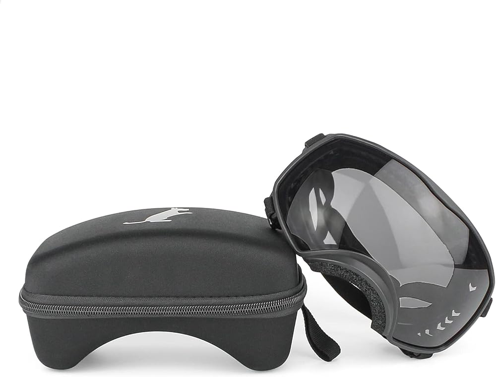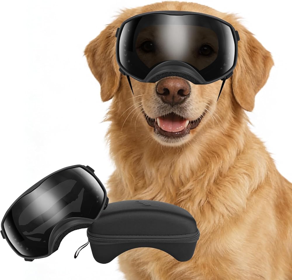 PETLESO Dog Goggles for Large Breed, Dog Sunglasses Medium Large Breed Wide View Pet Eye Protection with Adjustable Straps for Driving Riding Hiking, Black Lens