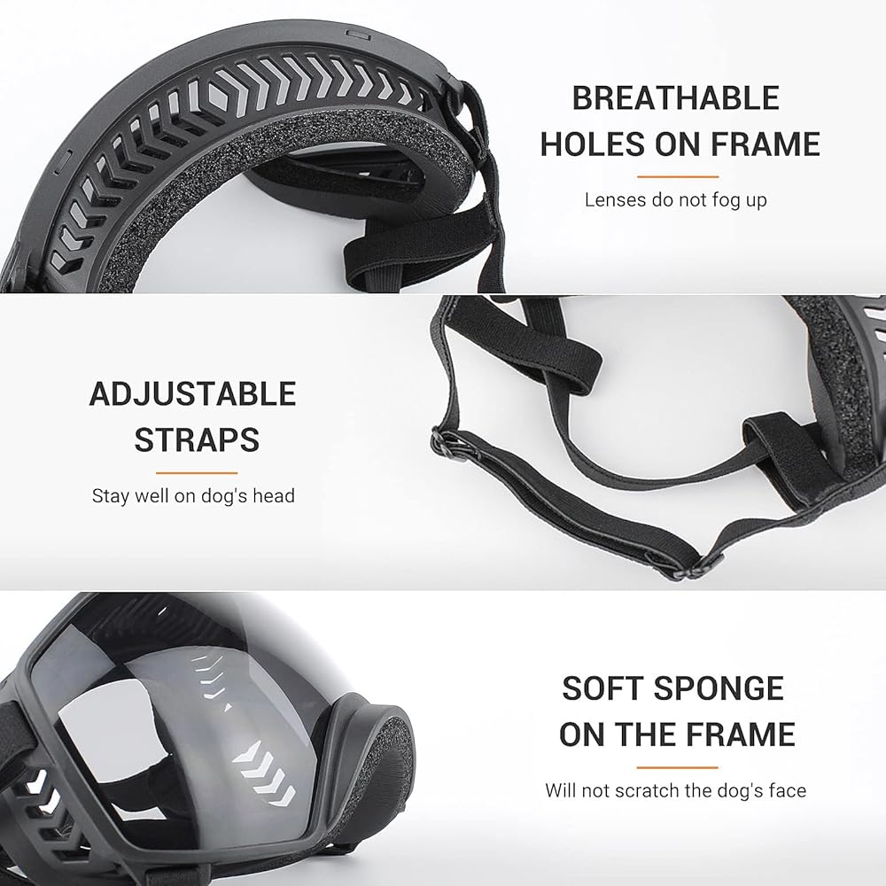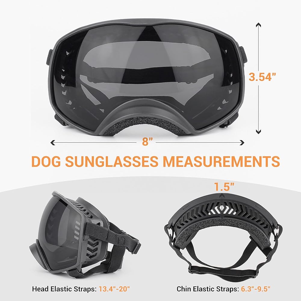 Best Eye Protection: Dogs like to stick their heads out of the window when driving, but dust, rain or snow will go into dog's eyes and even hurt them. These dog sunglasses are designed to protect your dog's eyes from UV, debris.