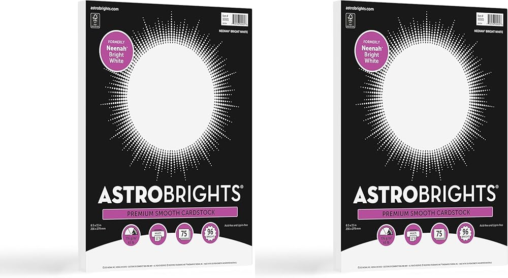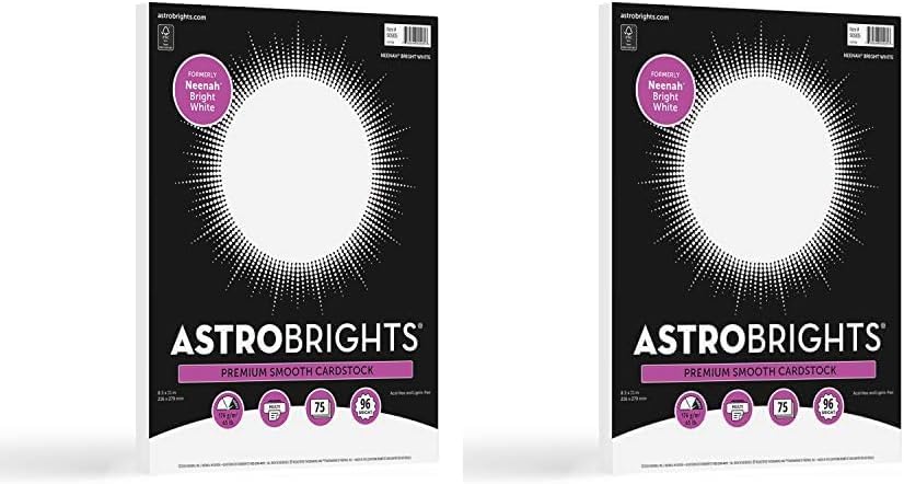 Astrobrights/Neenah Bright White Cardstock,8.5" x 11",65 lb/176 gsm,White,75 Sheets (90905-02) - Packaging May Vary,(Pack of 2)