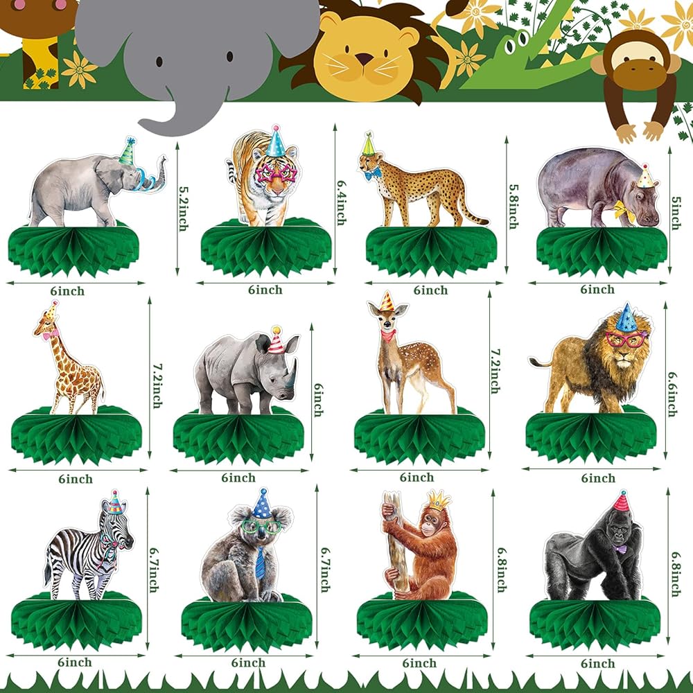 Abundant Quantity for Versatile Use: these safari animal honeycomb centerpieces come in a pack of 12, giving you plenty of options to decorate your party or event space; With this abundance of safari party decorations, you can easily create a cohesive theme and add charm to your tabletops; Whether you're planning a little one's birthday party, baby shower, or any other special occasion, having multiple decor options gives you the freedom to mix and match to suit your needs