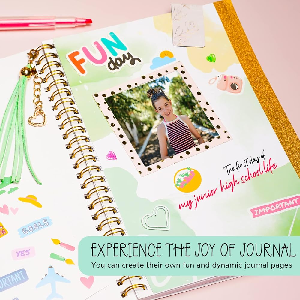 Amazing Stuff for Teen Girls: Our blank pages notebook for ages 6,7, 8, 9, 10, 11, 12, 13 years old and up girls to express themselves freely, can record their thoughts, sketch a picture and create fun doodles. They can use it to decorate their journal cover or the pages inside with stickers and cardboard cutouts, easily transforming the plain journal pages into beautiful yet functional layouts. They will be in love with using paper frames to personalize their crafts.