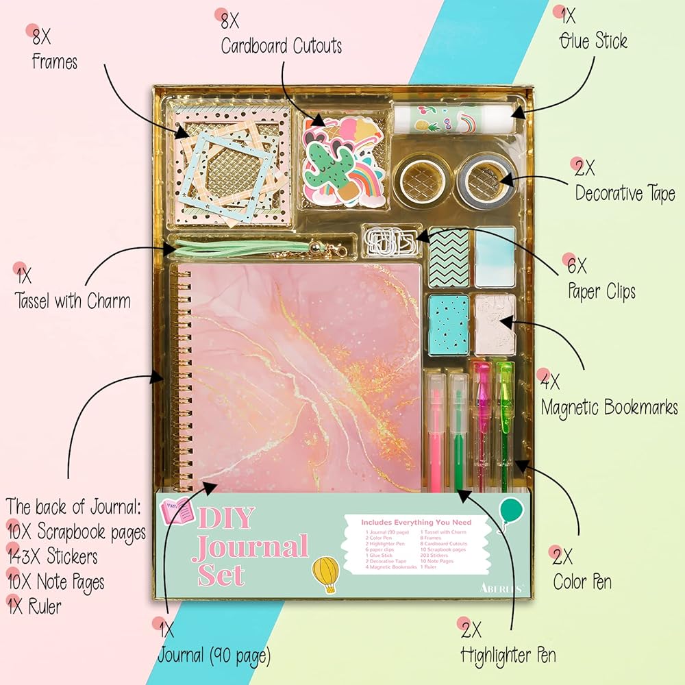 Perfect Tween Girls Gifts: Ideal gift of self-expression and empowerment great for holidays, gift baskets, birthdays, stocking stuffers . The included pens are good for daily writing, ideas, dreams, thoughts and memories on DIY decorated pages. The decorative tapes are perfect for adding color and small elements, also can use on stationary diaries, planners, and more. Now design the journal of the dreams in no time with the diary sets! Nice gift for 6-10 years old girls.
