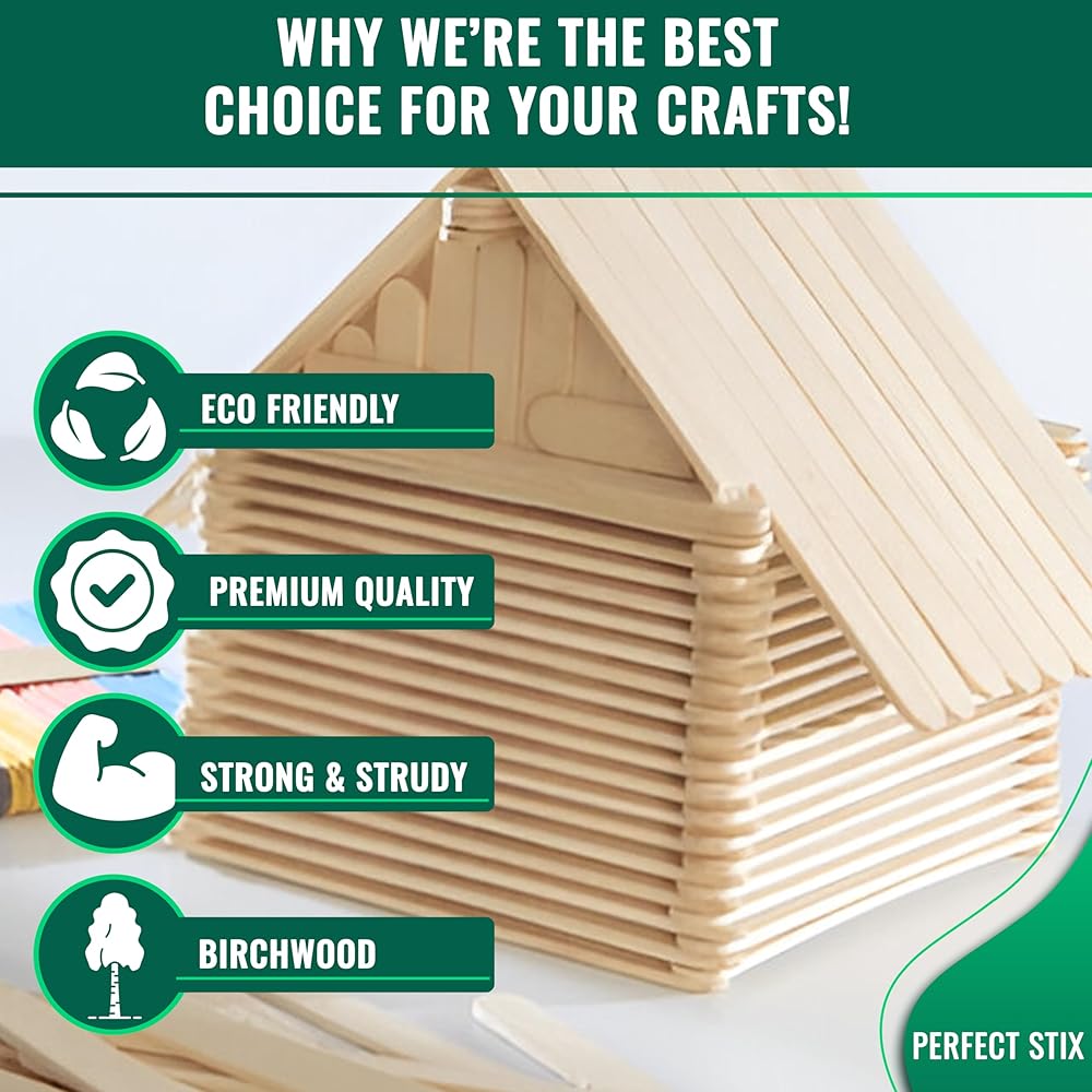 Perfect Stix - PS-114st-1,000 4.5" Craft Sticks/ Ice Cream Sticks/ Natural Wood - Box of 1,000ct