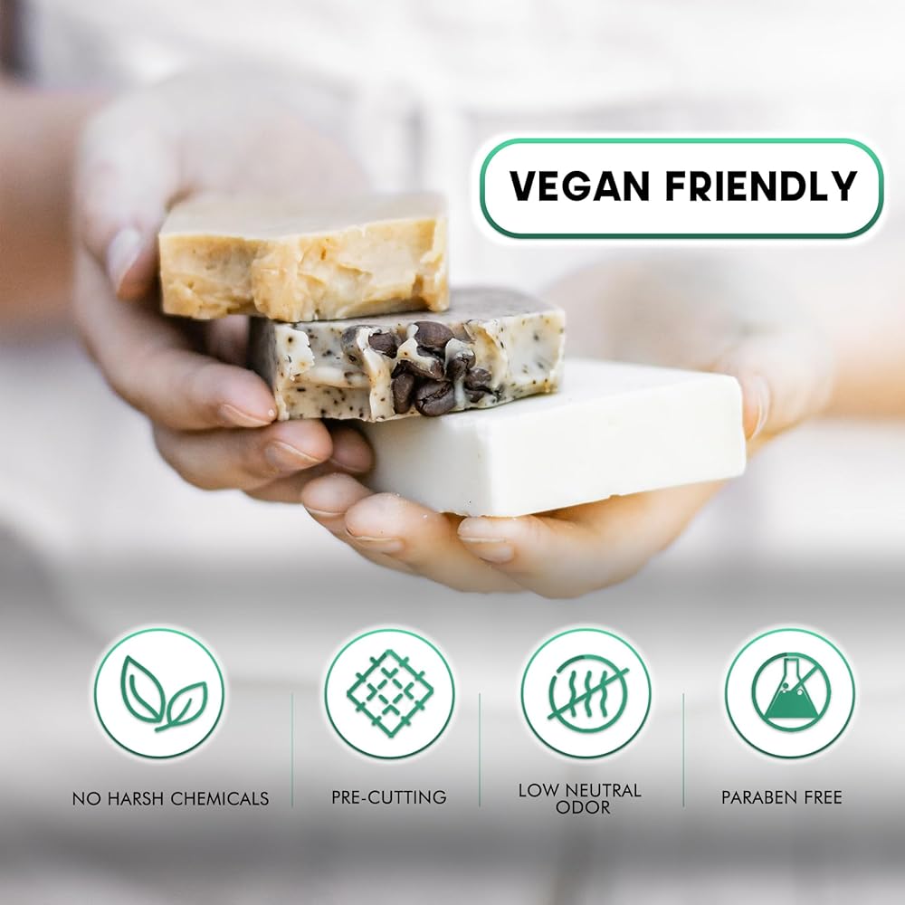 Precise Cubes, Premium Ingredients: Our soap base, featuring 40 clear-lined cubes per 2 pounds, each weighing 0.8 ounces, allows for precise usage. Made from pure water, glycerin, coconut oil, and olive oil, it offers a delightful scent and moisturizing lather.