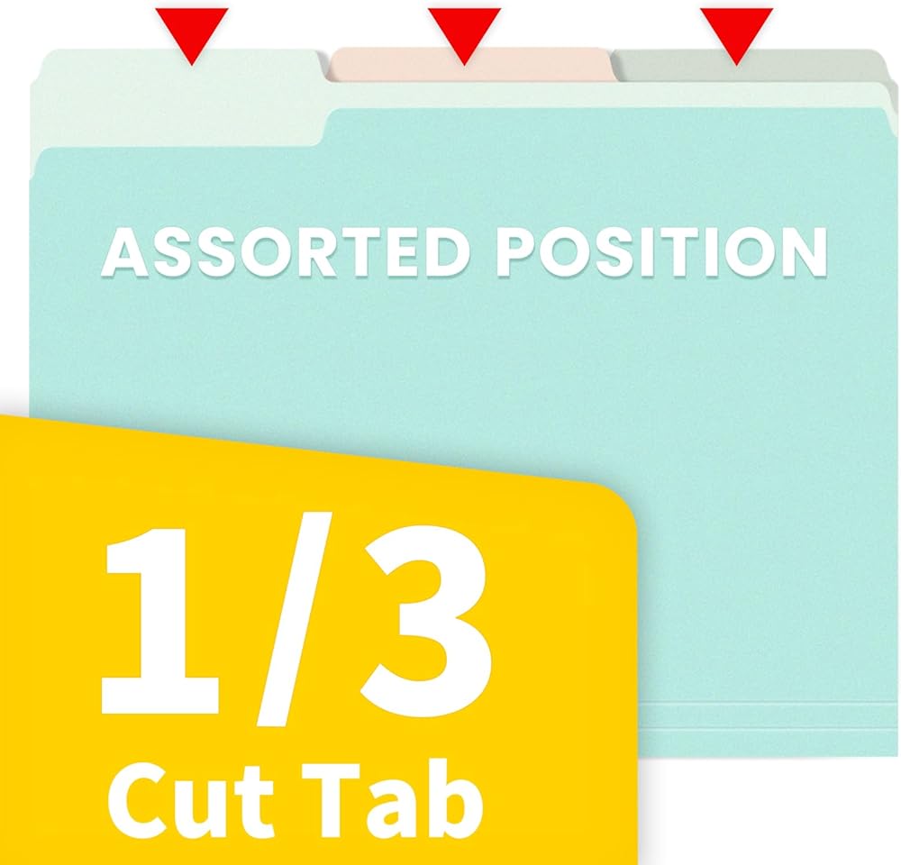 1/3 Cut Tab: Effortlessly navigate your files with the 1/3 cut file folder tabs design. This feature allows for clear labeling, making it simple to organize and access your documents efficiently. Keep your office tidy and organized with these easy-to-use folders.