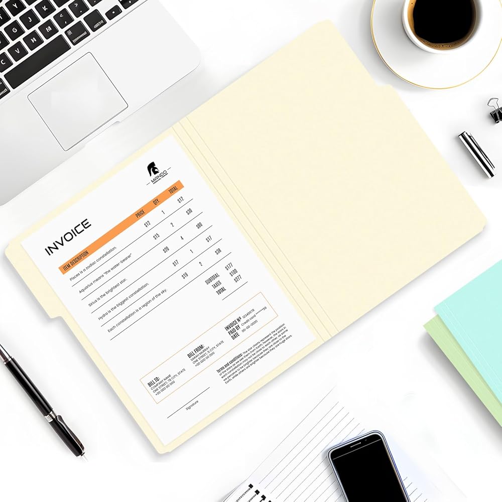 Manila File Folders: This classic and popular color makes these folders for documents a good choice for effortless labeling and organization. These folders are ideal for neatly managing invoices, reports, or individual documents, ensuring everything is neatly in place.